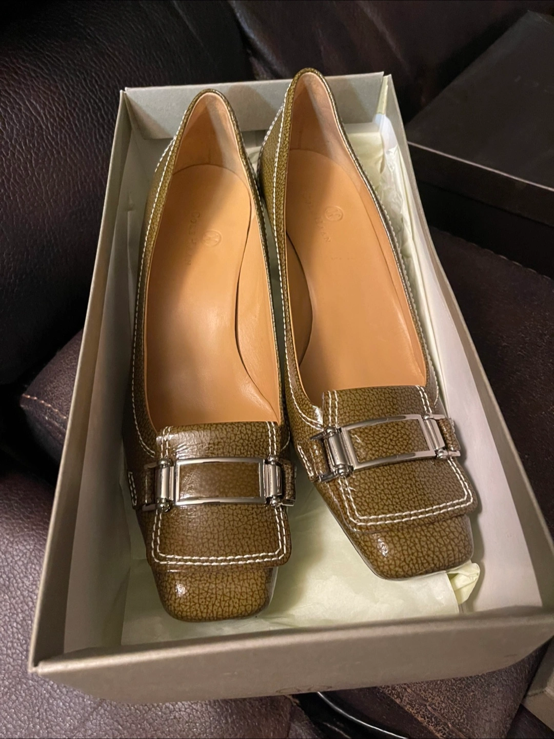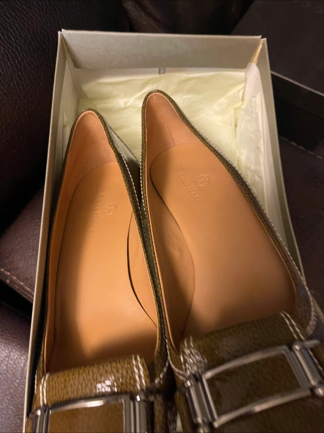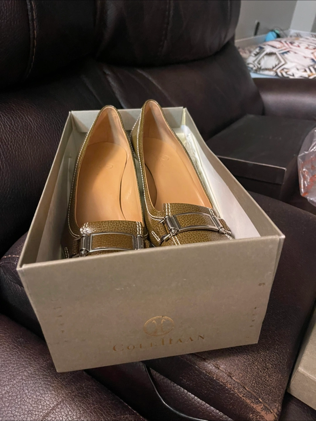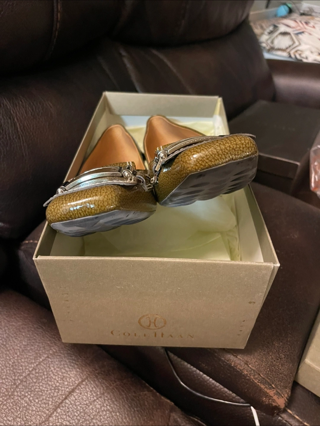 262These are a pair of Cole Haan flats in a unique olive green color. They are size 9.5 and come with their original box!