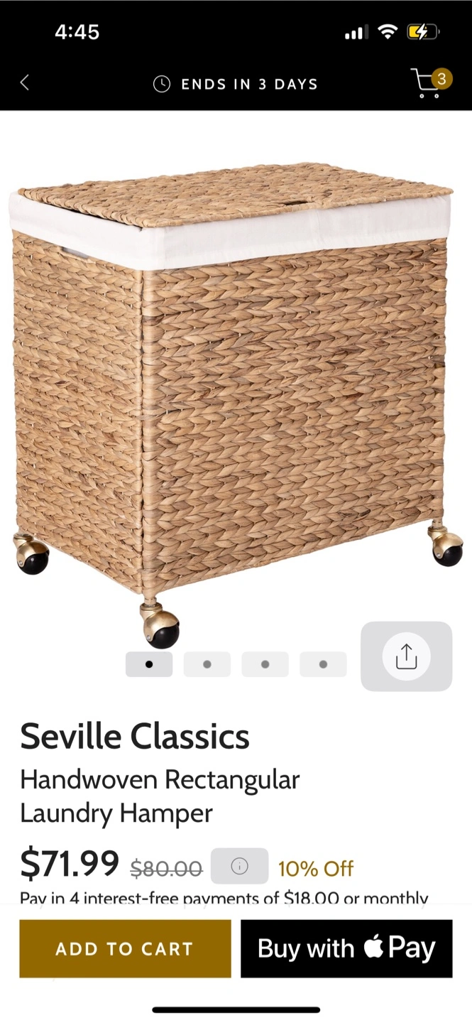 Selling a Seville Classics handwoven rectangular laundry hamper! It's in great condition and ready to help keep your space tidy. It originally retailed for $71.99.