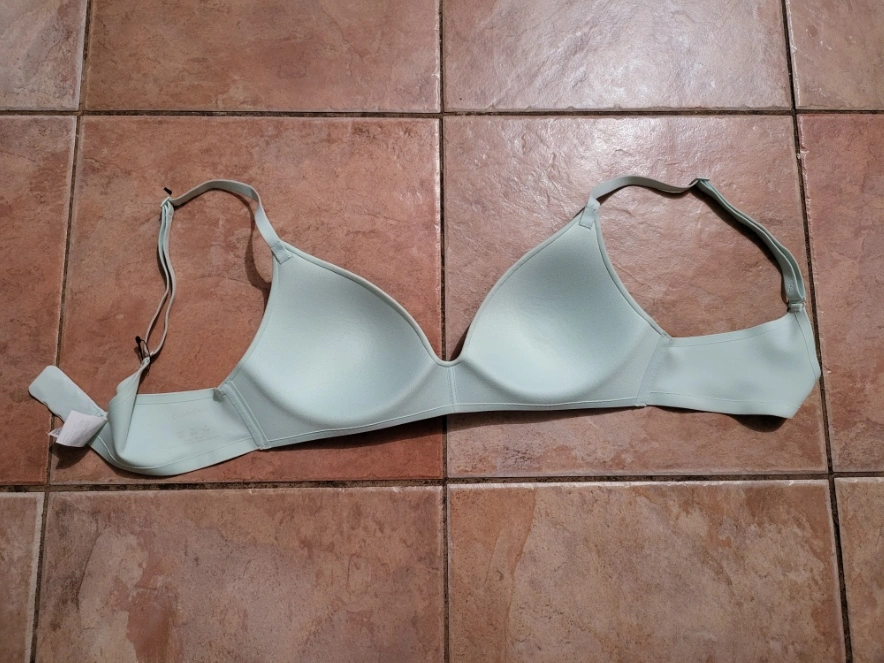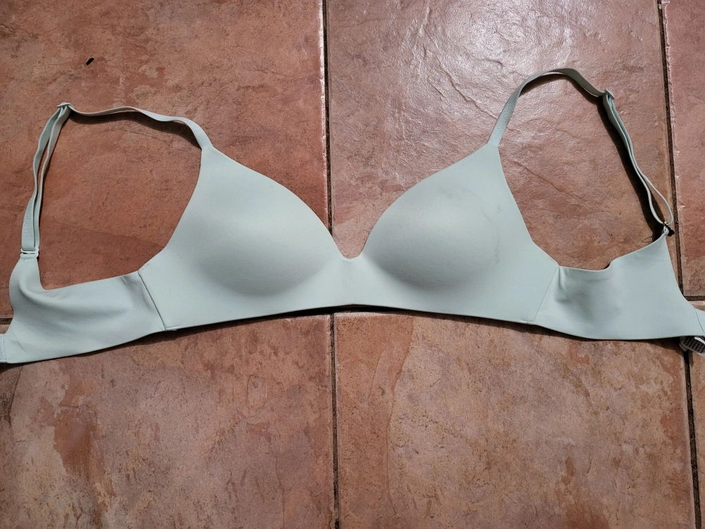29Lightly Lined. slight color run from wash. it will wash out over time. mint green size 32B it is a like new bra but I prefer more padding.