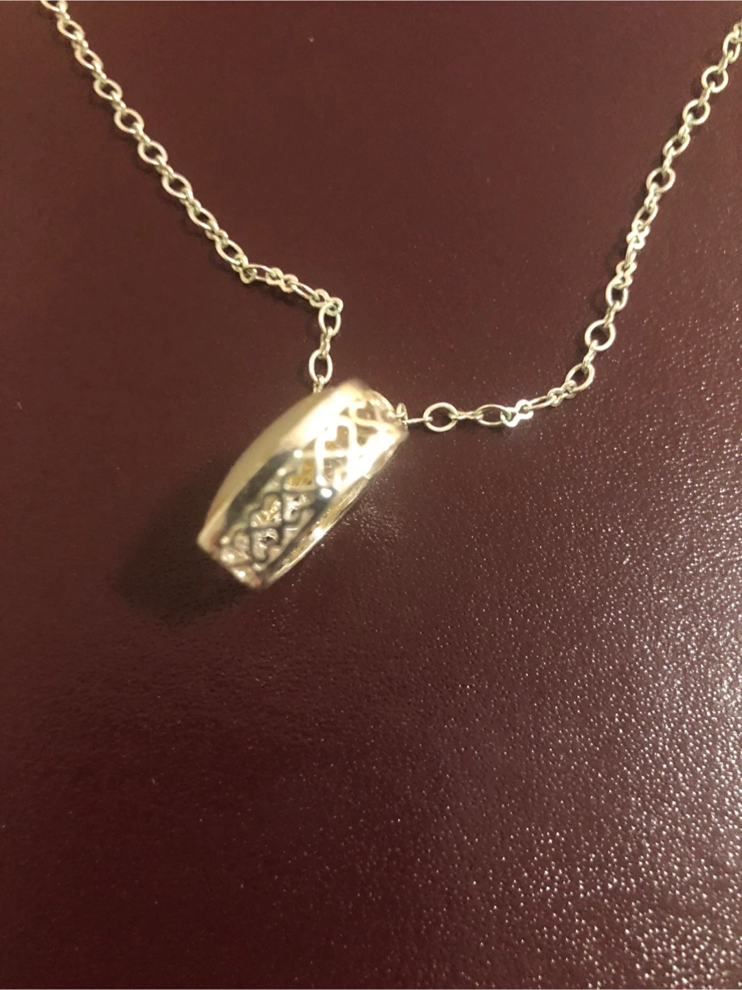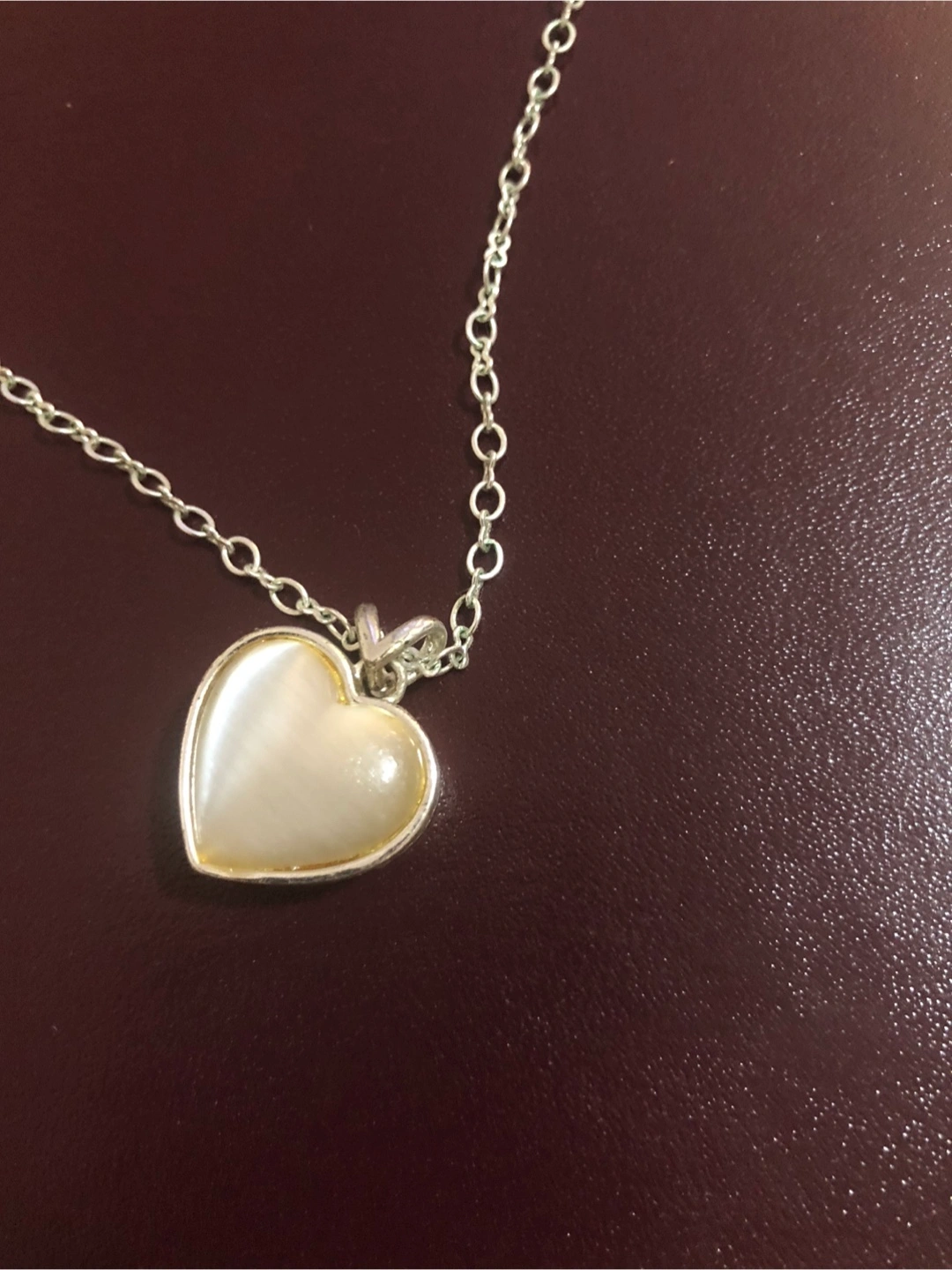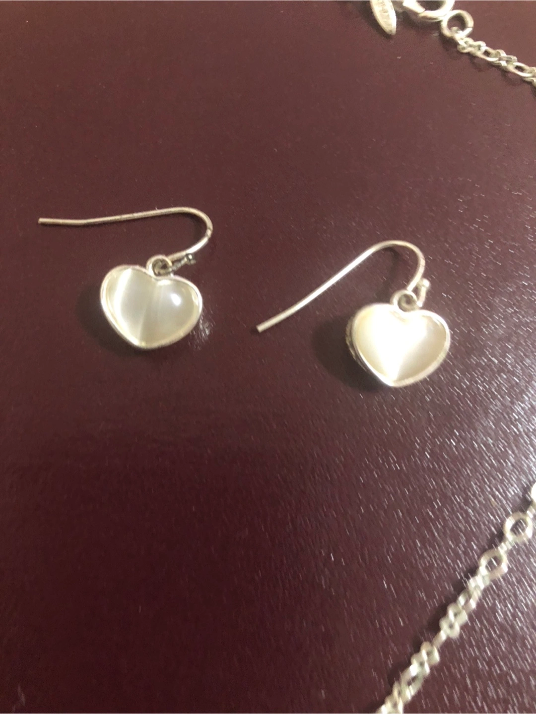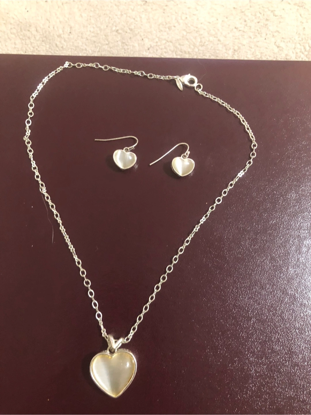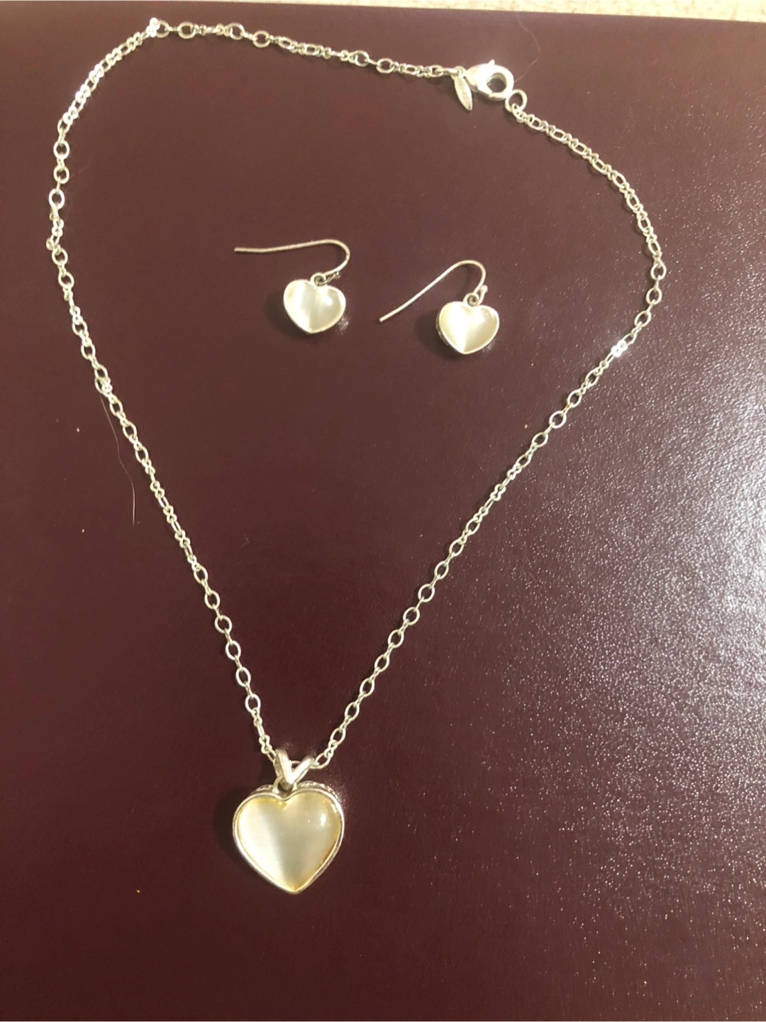 Silver heart-shaped necklace and matching earrings.