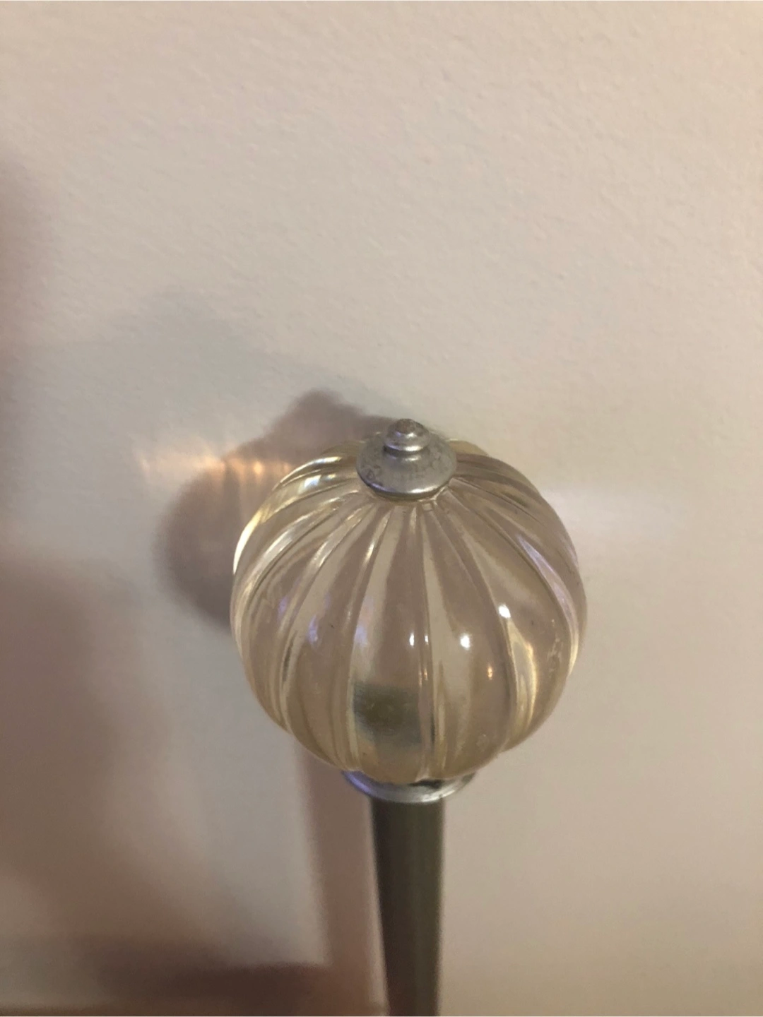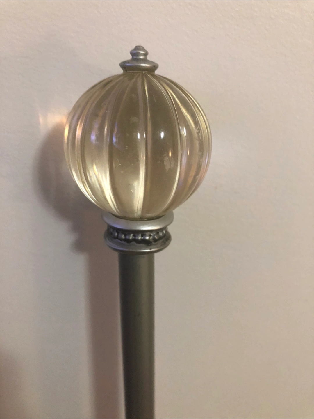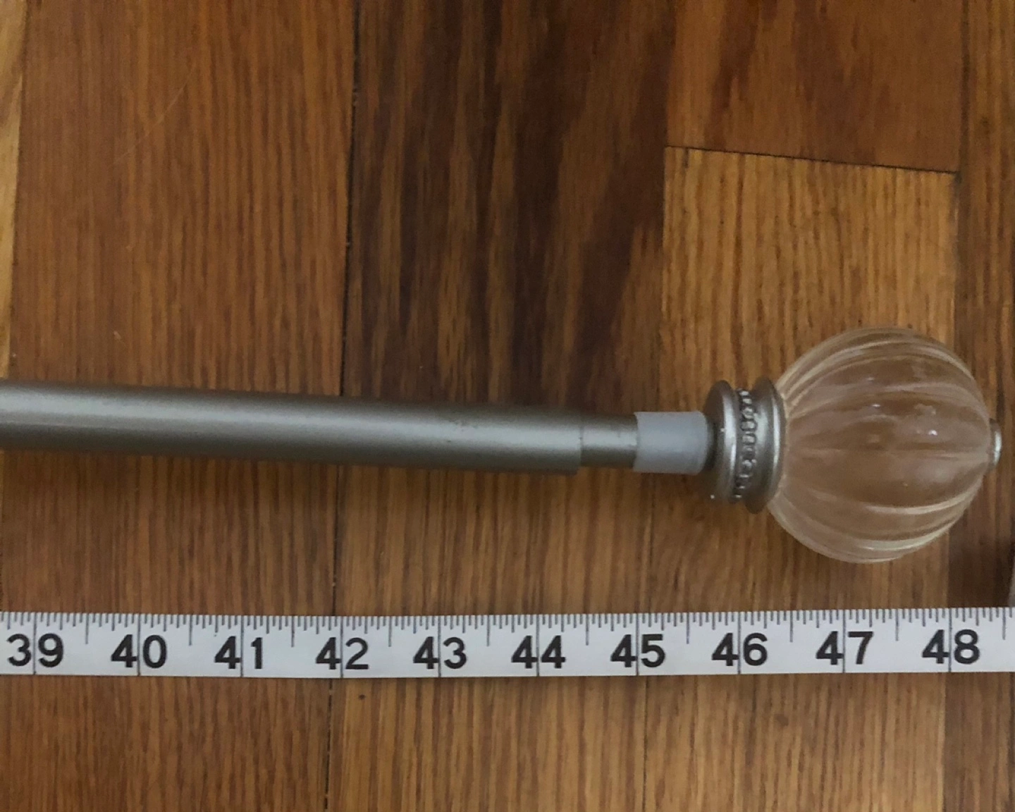 Elegant curtain rod with a glass finial. Measures 48-84 inches