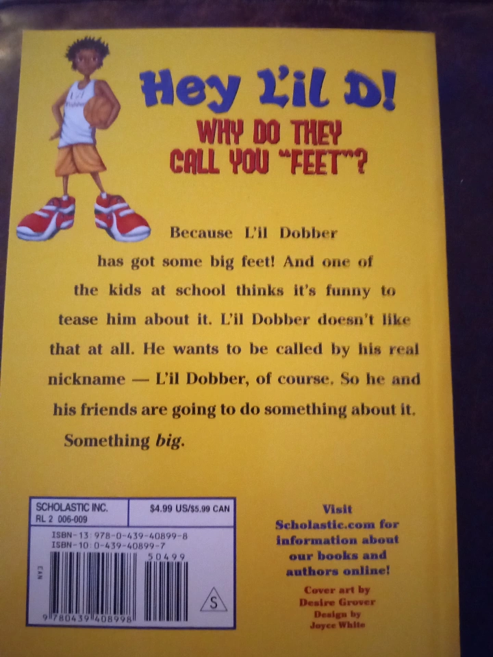 134I'm selling the book 'Hey Lil' D! It's All in the Name' by Bob Lanier and Heather Goodyear. It's a scholastic book about Lil' Dobber. He wants to be called by his real nickname, Lil' Dobber of course. So he and his friends are going to do something about it