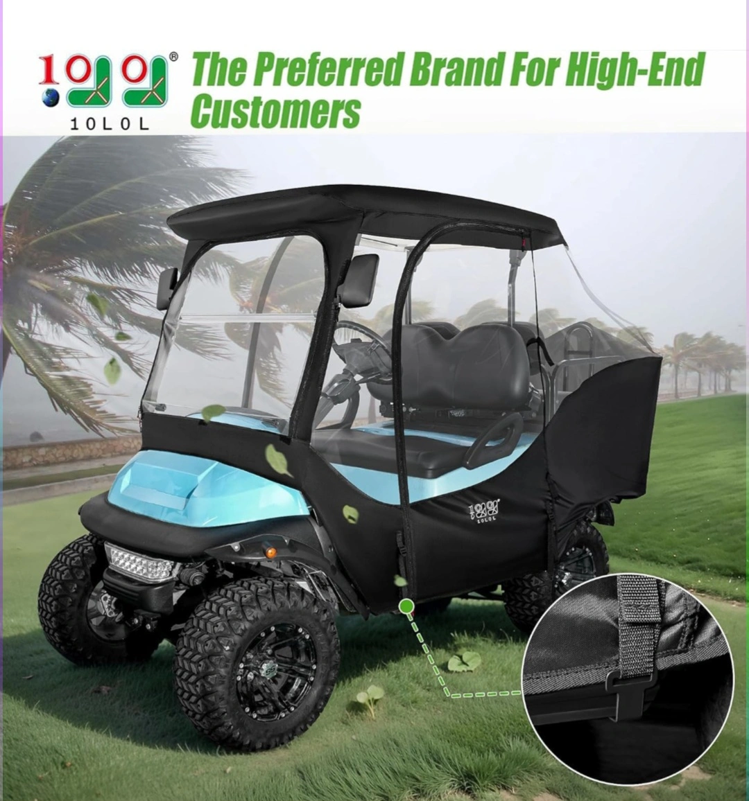 Shield your Club Car Precedent (2+2) golf cart with this premium all-weather enclosure from 10L0L. Whether it's rain, snow, wind, or sun, this rugged cover provides total protection and clear visibility — no tools required.