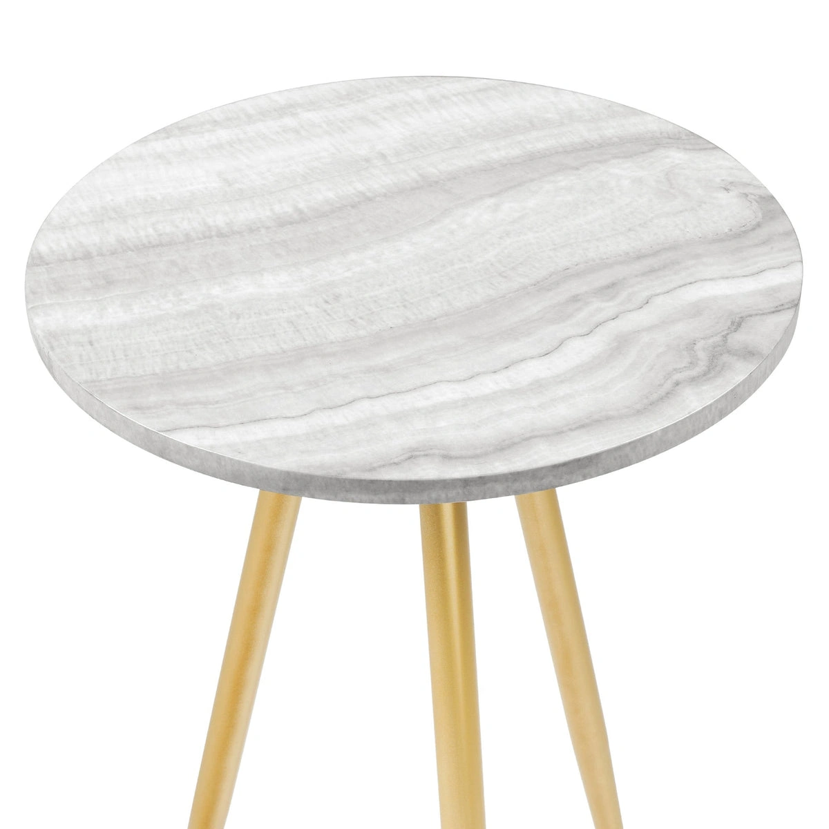This round accent table features a beautiful marble top and sleek gold legs. It's perfect for adding a touch of elegance to any room. The table is in great condition and ready for a new home! It's a great size for small spaces and can be used as a side table or nightstand