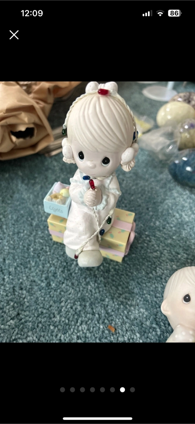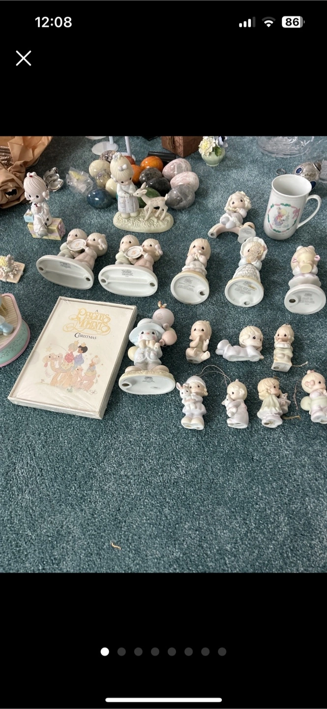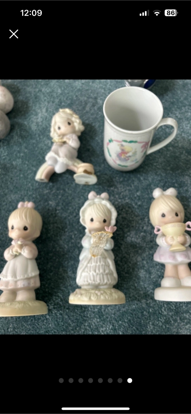 Selling a collection of Precious Moments figurines and a music box. These charming collectibles feature the classic Precious Moments design and would make a lovely addition to any display They are 3 4 5 dollars each