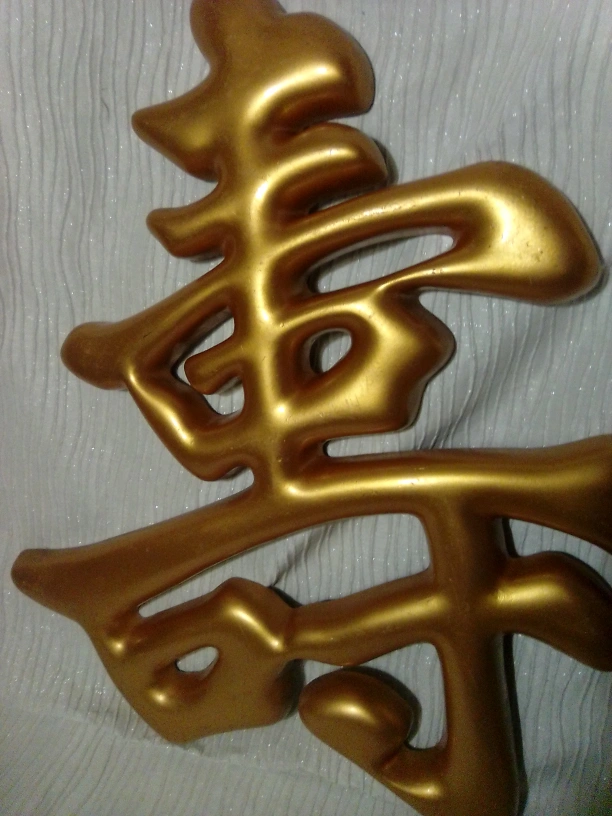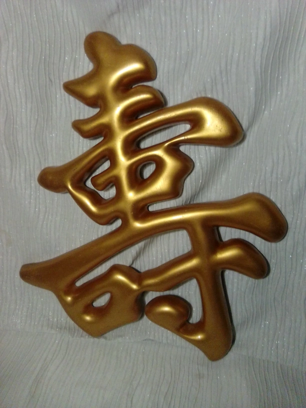 This is a gold-colored Chinese symbol representing longevity. It's a beautiful decorative piece that could add a unique touch to any space