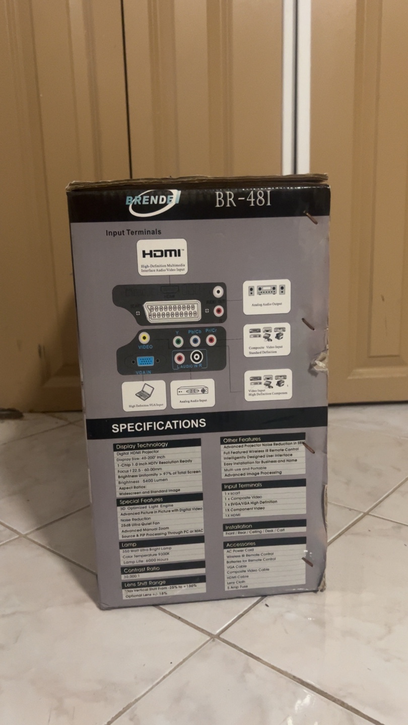 Selling a Brendel BR-48I LCD projector. It supports Full HD 1920x1080 resolution. Designed in Germany for professional use in HDTV theatres. It was bought a little while ago but it was never used or even taken out of the box. Can be used for a home theatre