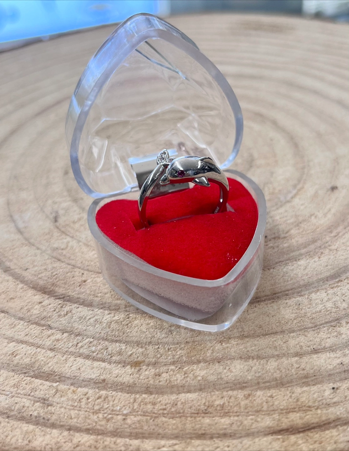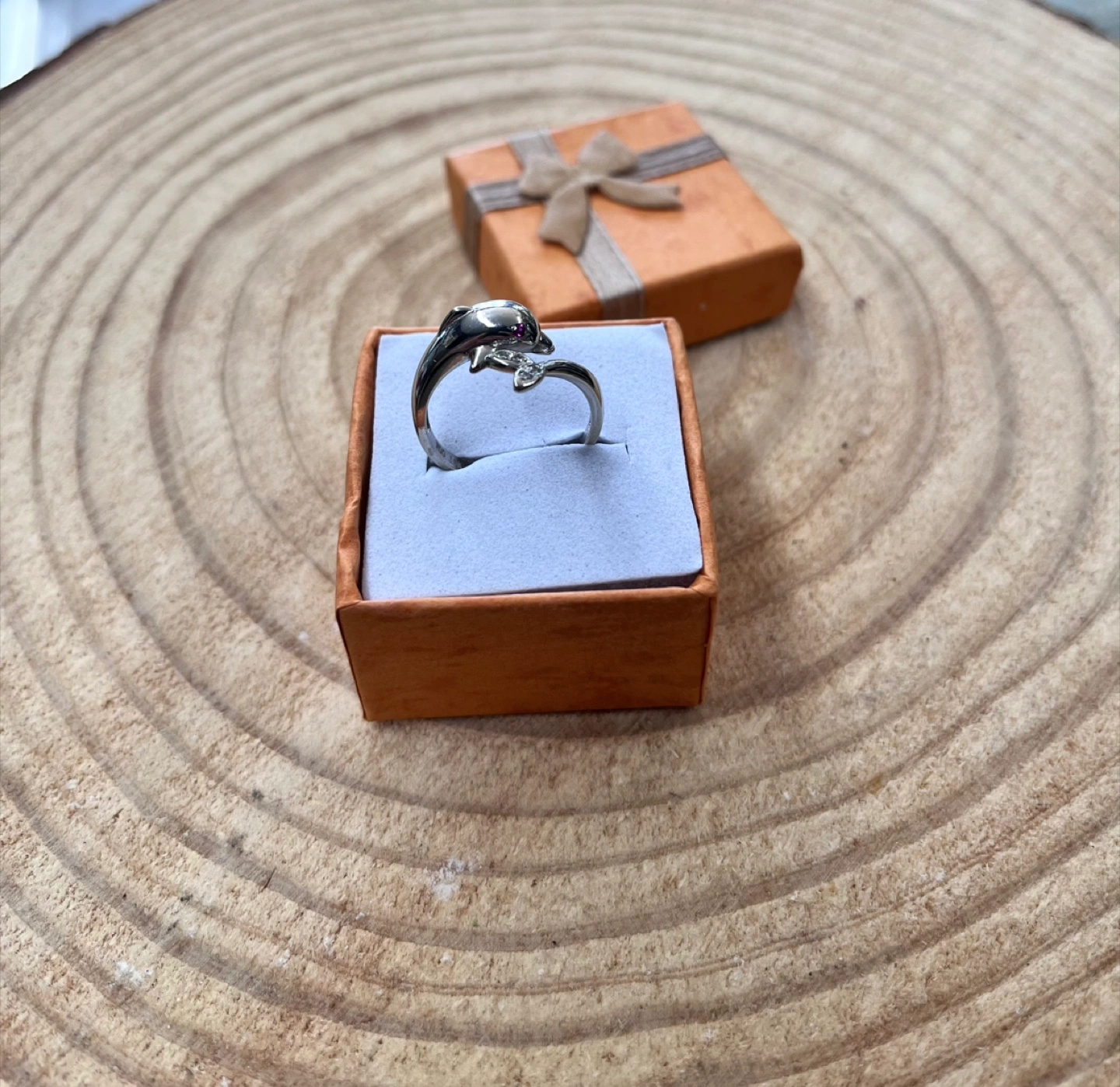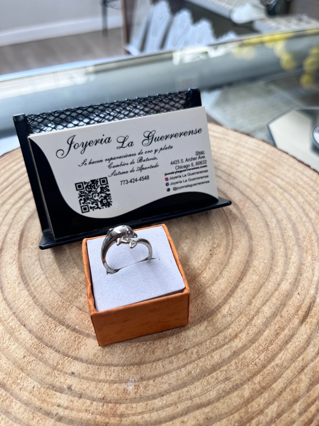 65Selling a cute dolphin ring real gold 10k from Joyería La Guerrerense! It comes in a sweet heart-shaped box, perfect for gifting or keeping it safe. The ring features a lovely dolphin design with a small stone accent. It's in great condition and ready for a new home !! Anillo oro blanco original 10k en forma de delfín con piedras zirconia listo para usarlo o regalar a tu pareja medida 7 . O si ocupas otra medida se puede arreglar con un cobro extra por el trabajo. Se hacen reparaciones en oro y plata cambios de batería para los relojes tenemos el sistema de apartado en toda la joyería con tamos con financiamiento tomamos pagos por zelle efectivo o también con tarjeta con una identificación bigente y le tomamos fotos ala identificación por seguridad del cliente y nuestra