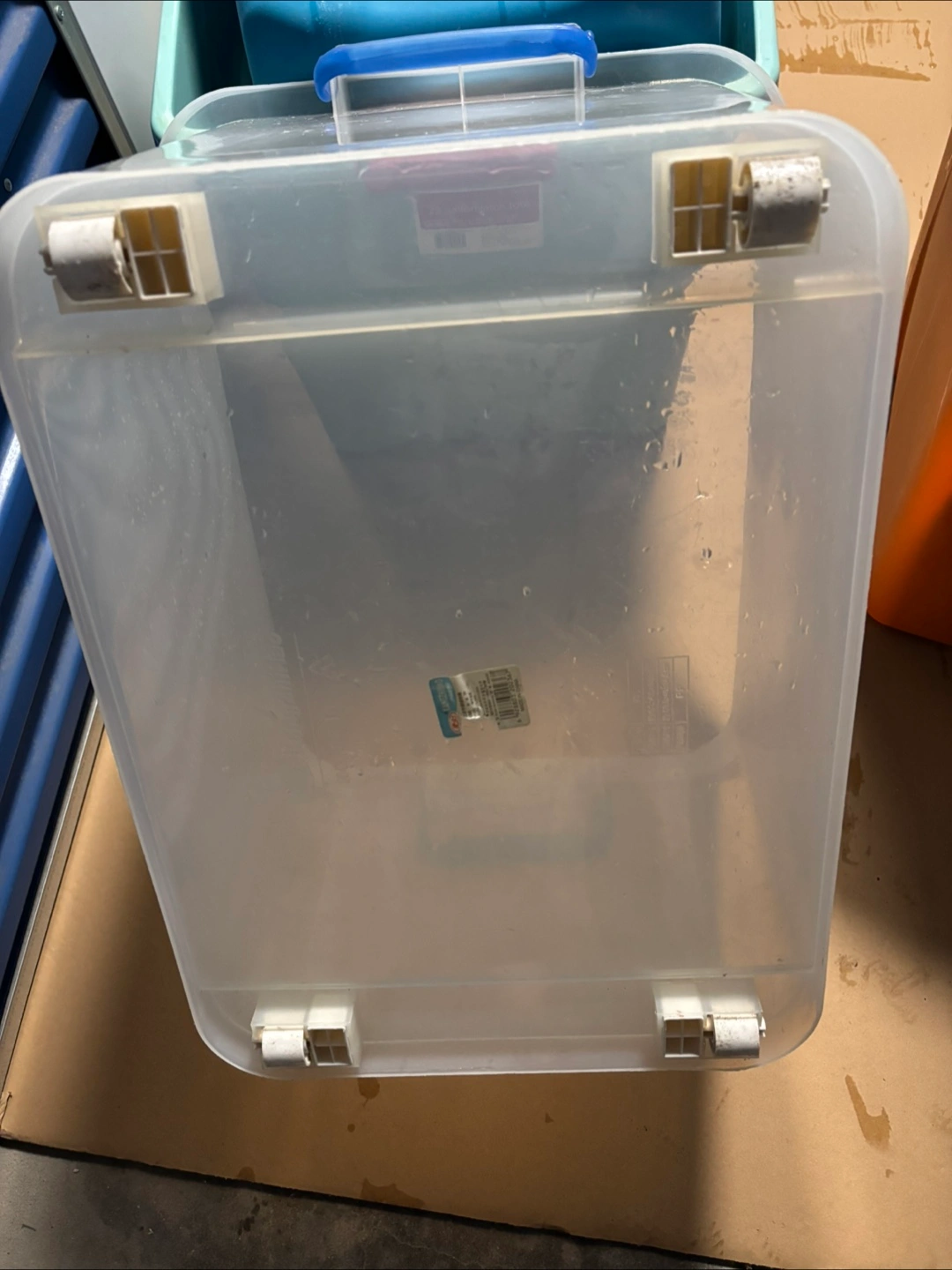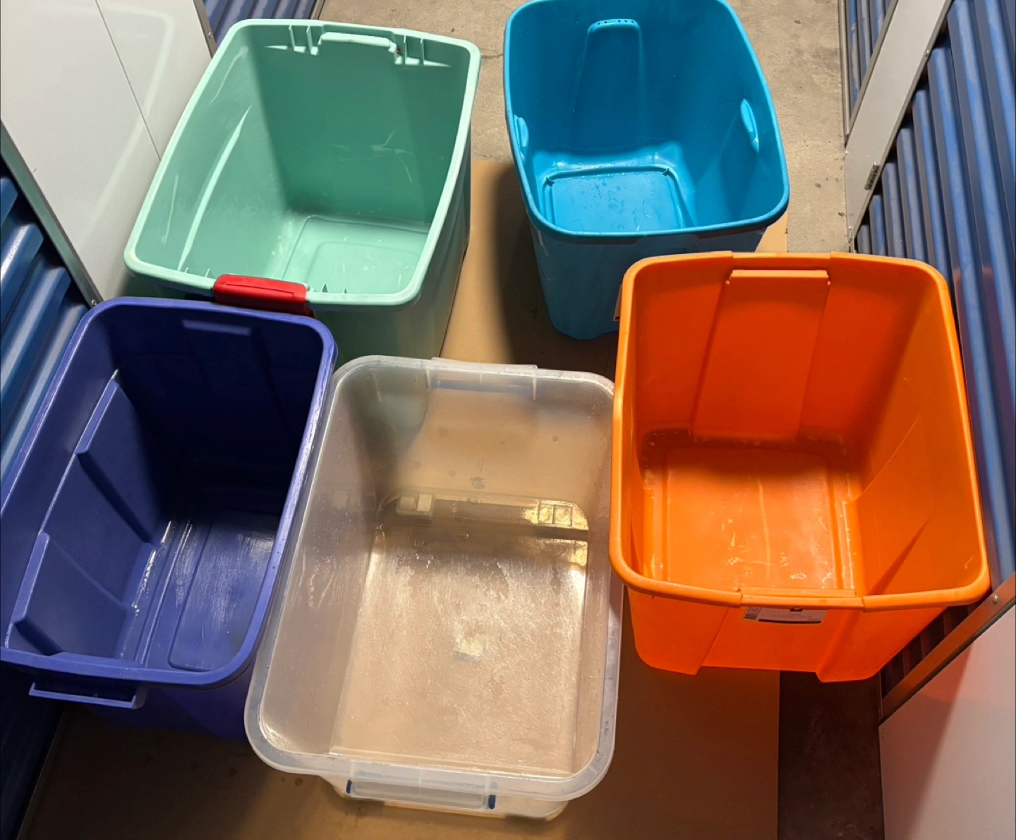 I have a collection of used storage totes available! There are a few different brands and sizes. - Sterilite 20 and 22 Gallon Latch Totes - Homz 18 Gallon Storage Tote - Rubbermaid 18 Gallon Storage Box No lids $5 each or $20 all