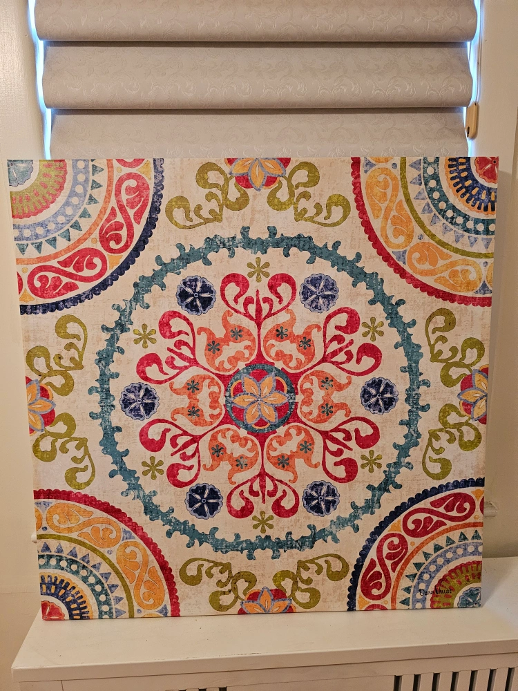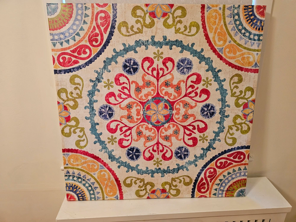 This beautiful Moroccan tile art wraparound canvas painting is a large 35" x 35" x 4". The contemporary artwork is an original creation, made on canvas with intricate details of a geometric design that showcase the unique theme of art and culture. Perfect for adding a touch of style and creativity to any space, this easy-to-hang, lightweight piece is a stunning addition to any art collection or home decor. Local pickup only. Located in Brooklyn, NY. See my other listings by visiting my Ebay store, theevictorianrose. More interesting listings also at: mvdandfriends1313.