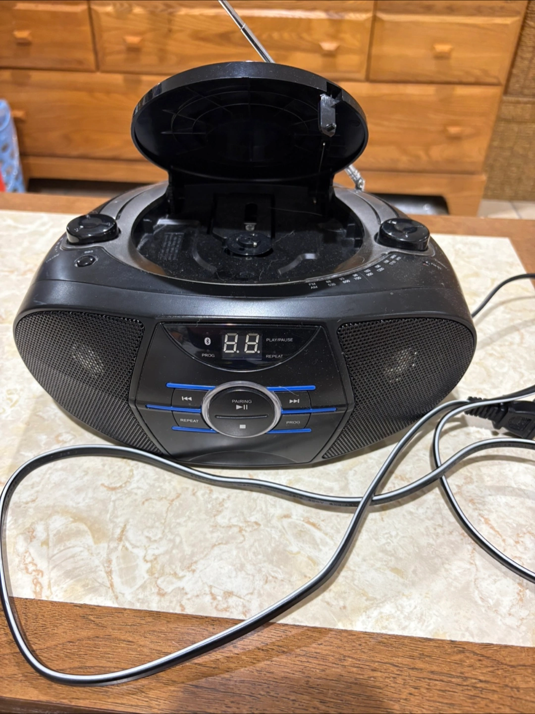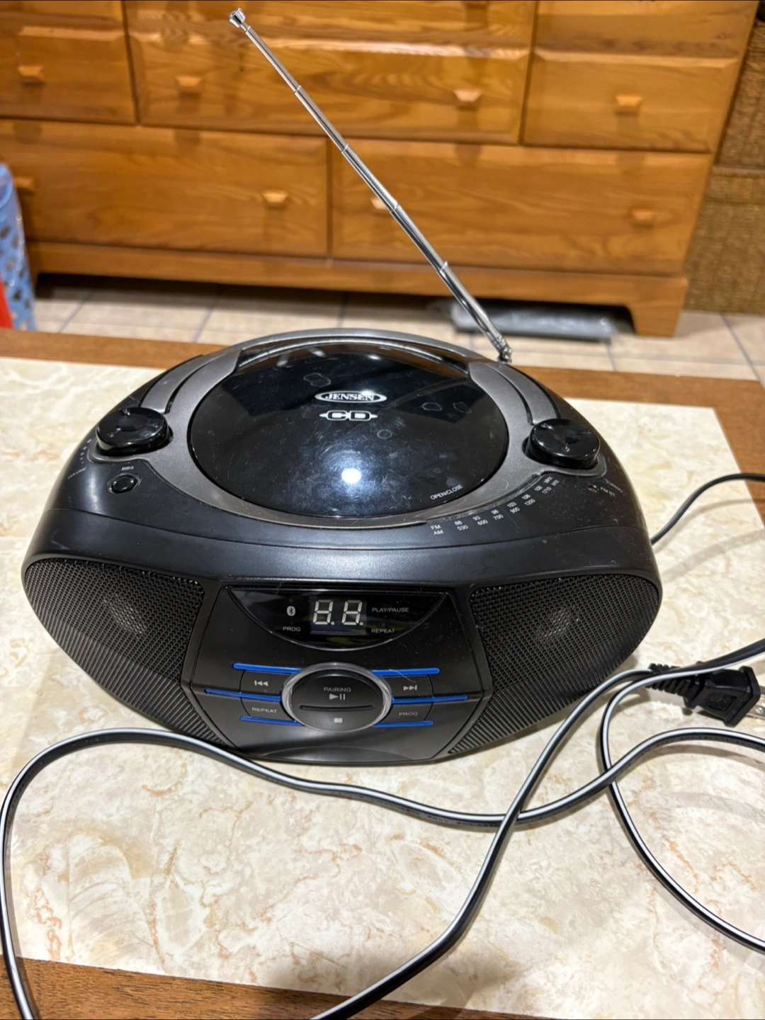 Selling a Jensen CD650 portable stereo CD player with radio. It has a top-loading CD player and an AM/FM radio. Perfect for enjoying your favorite music!