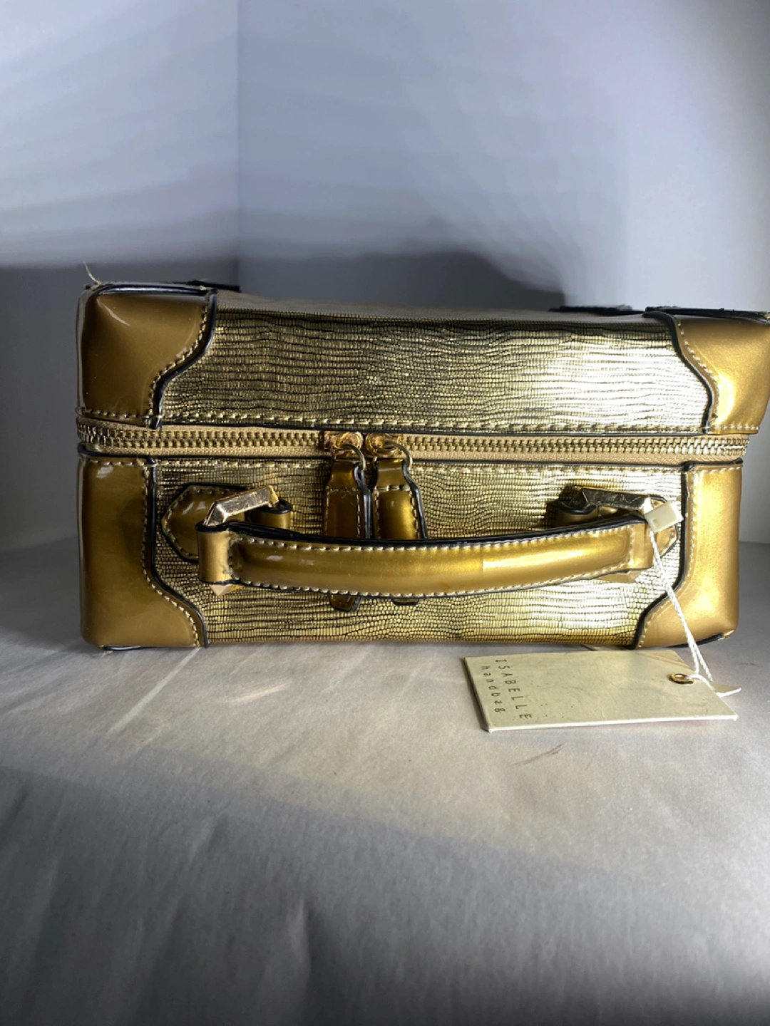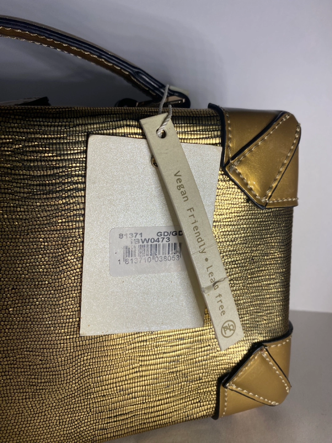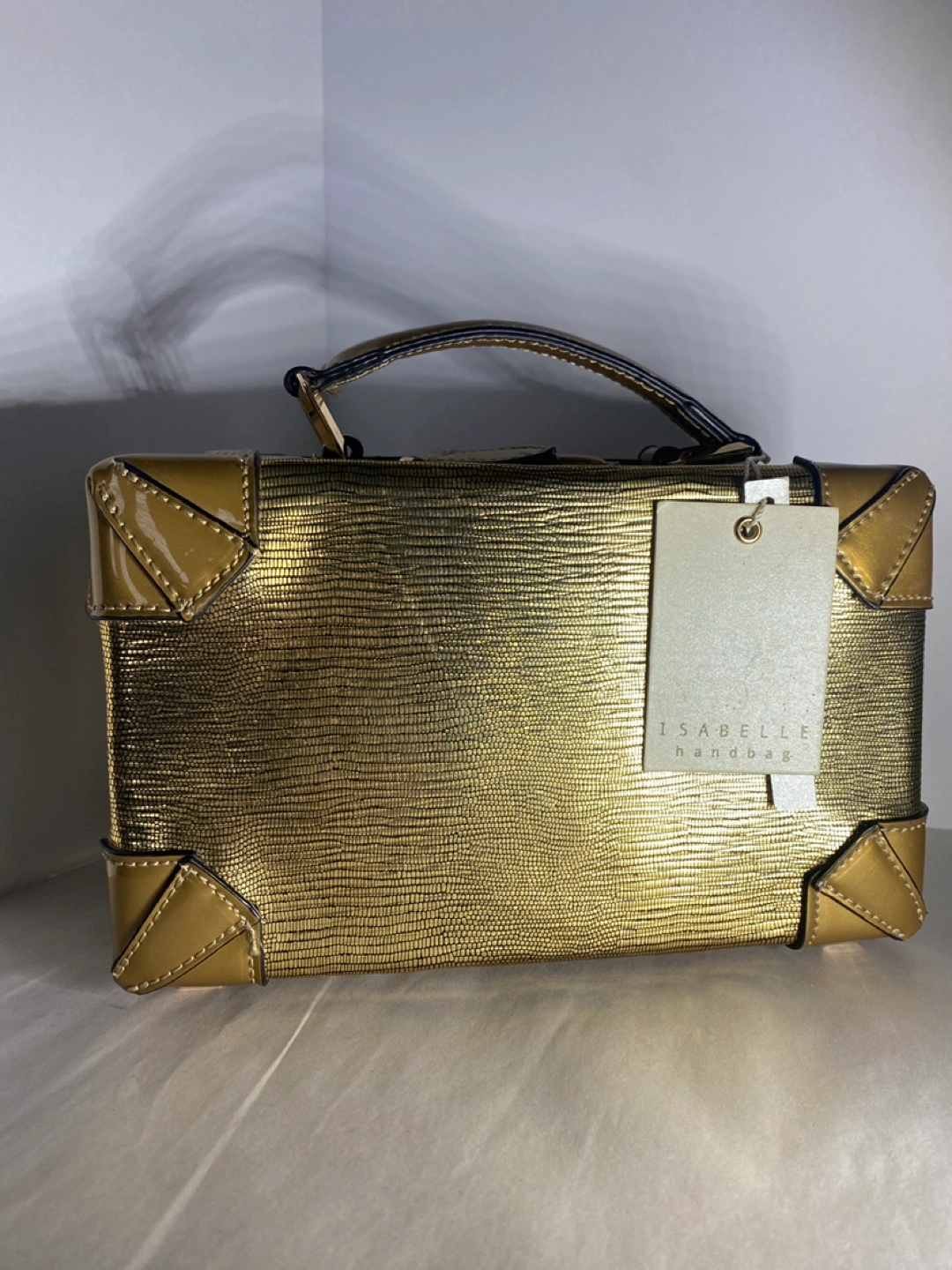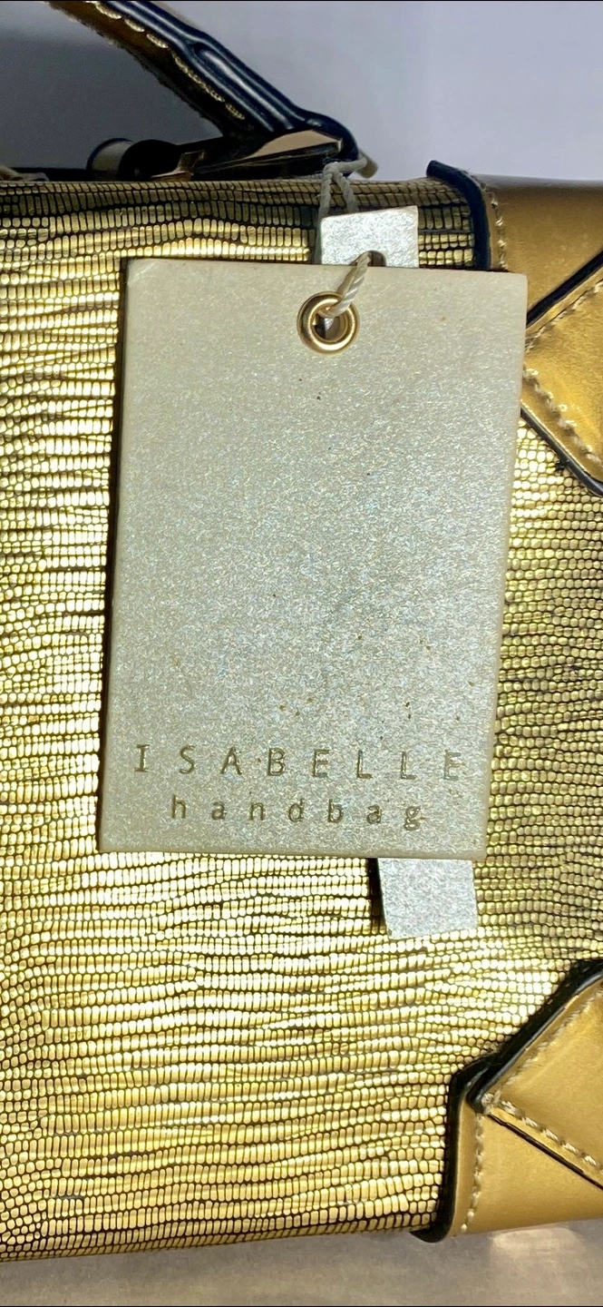 This is a beautiful gold Isabelle vegan leather new with tags handbag. Very well made, interior zipper pocket. No shoulder strap but one can easily be added. Pickup on Astoria Blvd South.