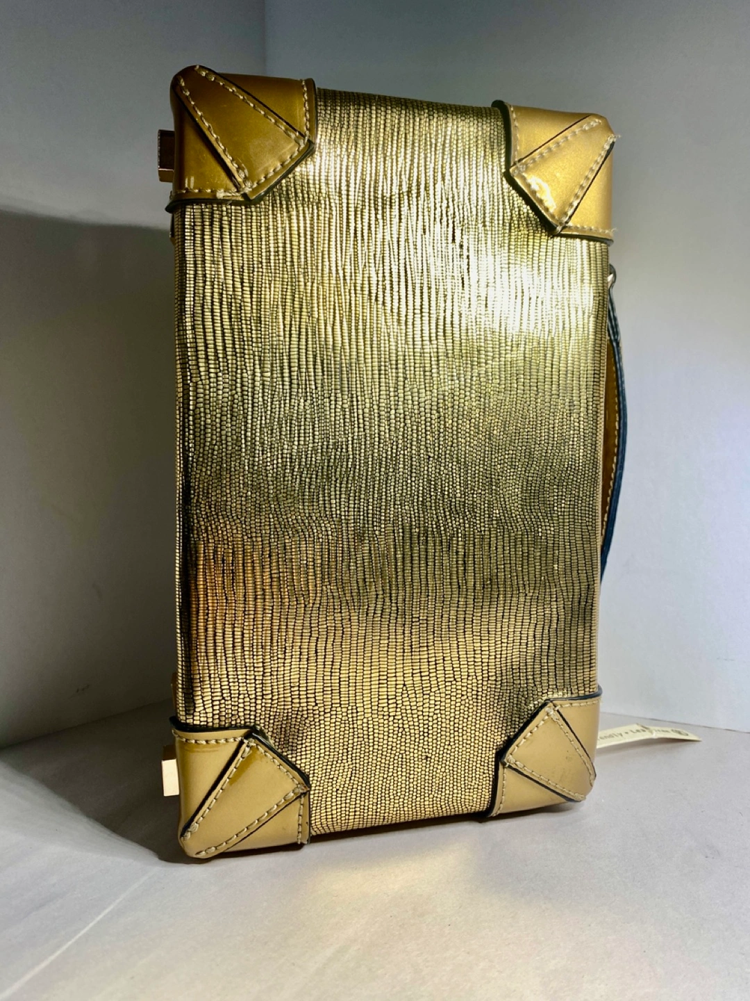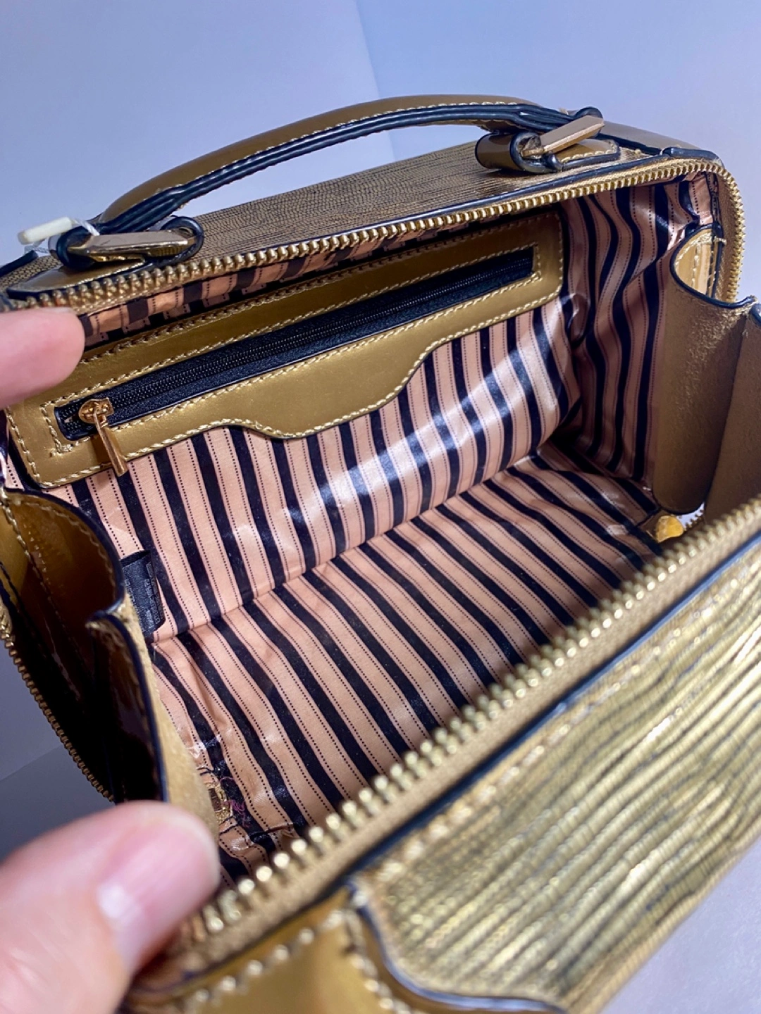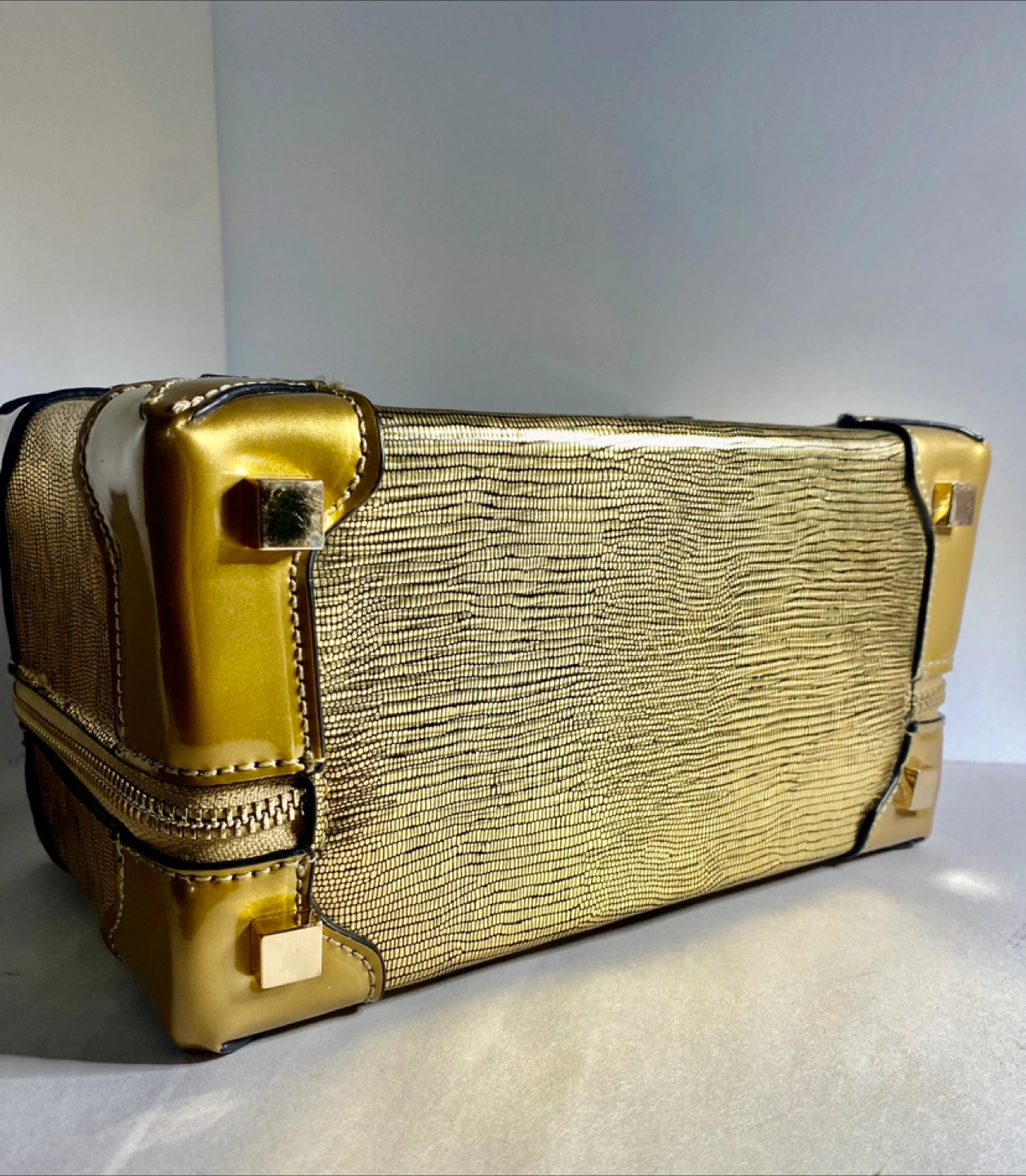 This is a beautiful gold Isabelle vegan leather new with tags handbag. Very well made, interior zipper pocket. No shoulder strap but one can easily be added. Pickup on Astoria Blvd South.