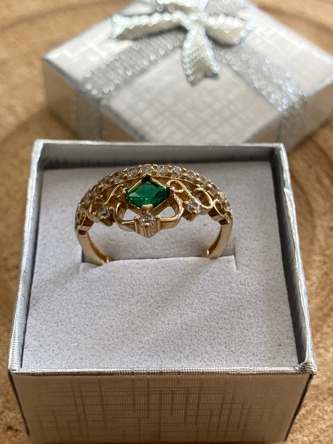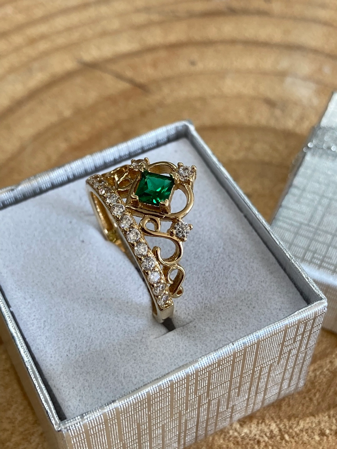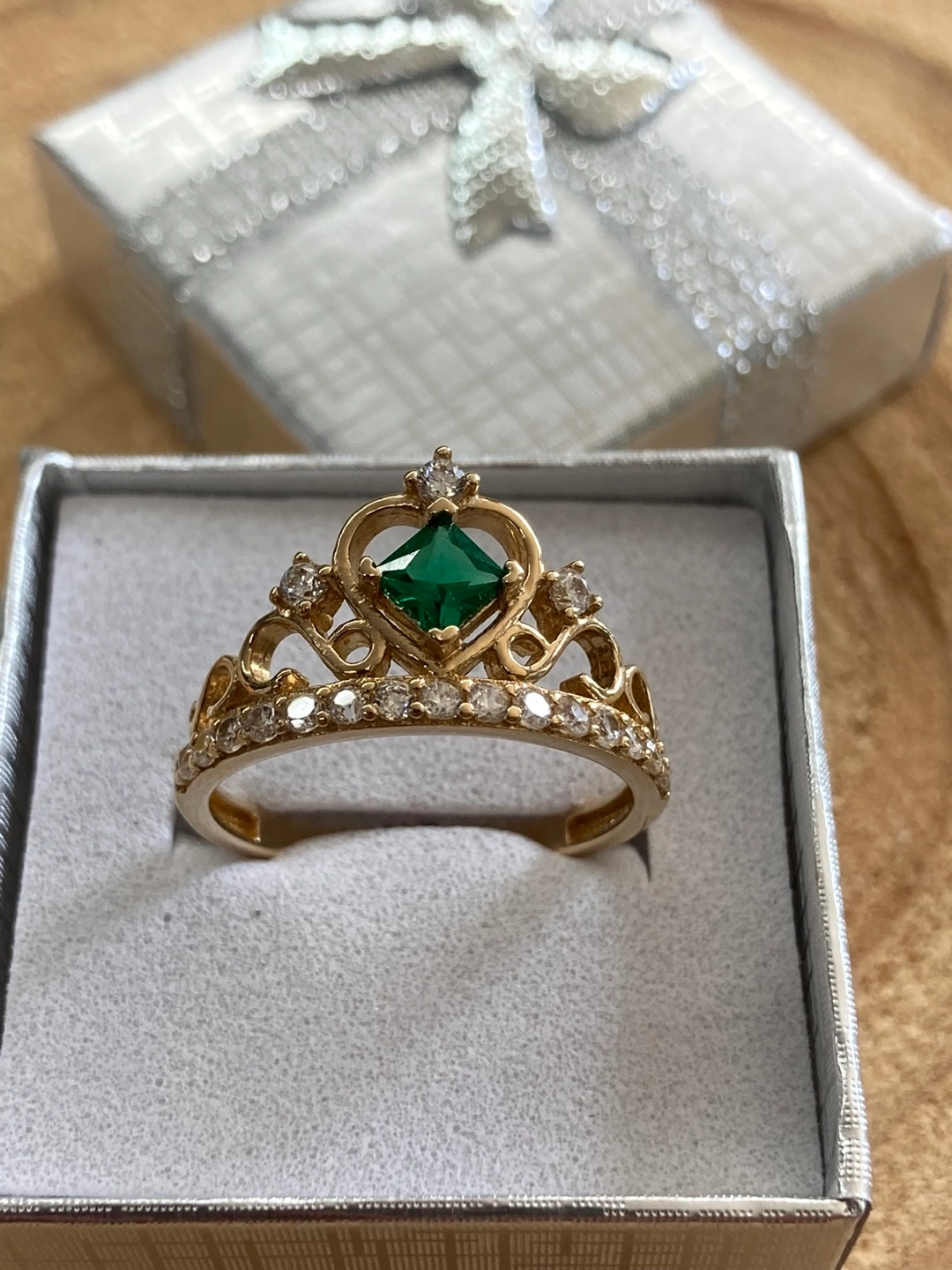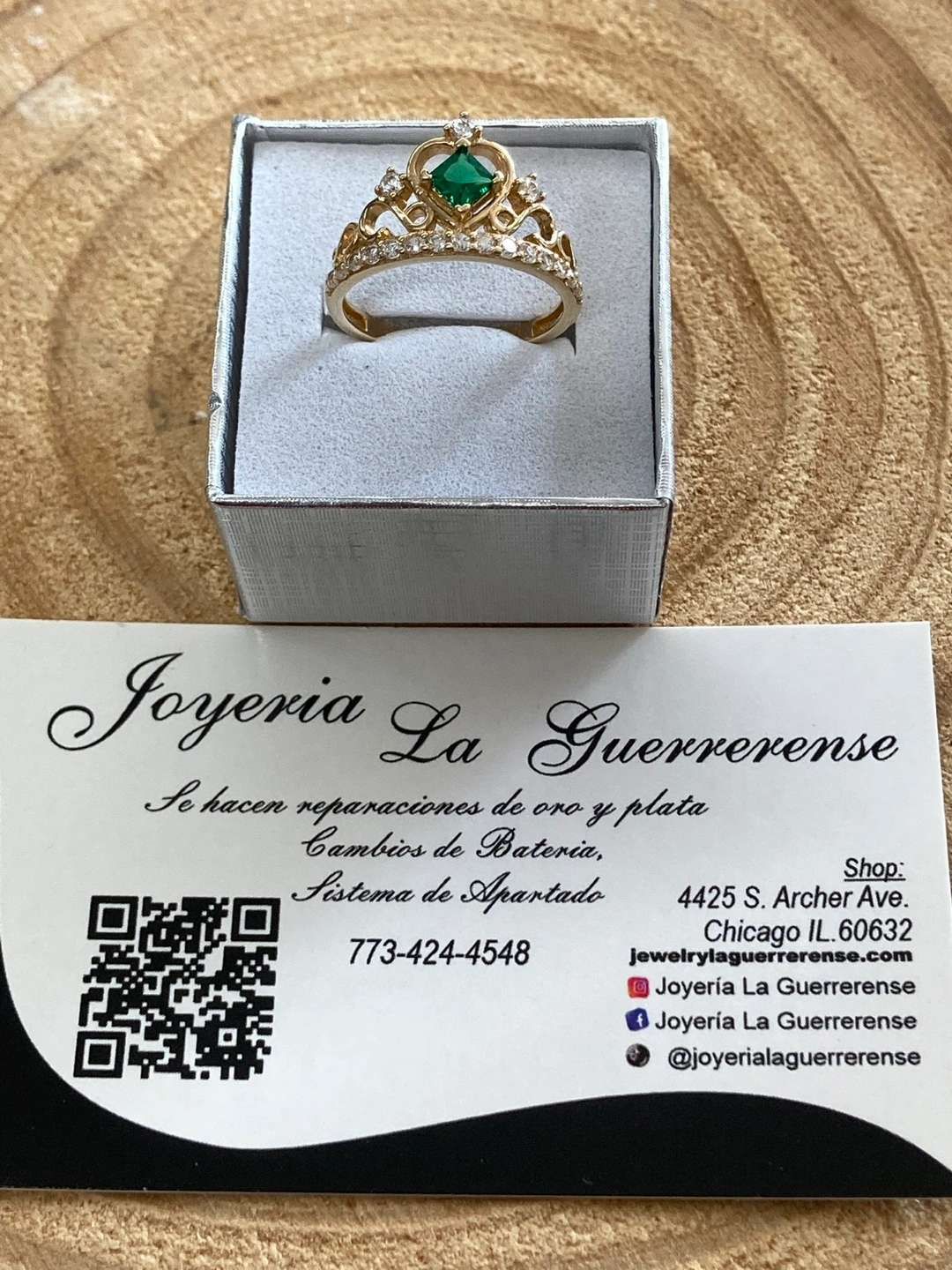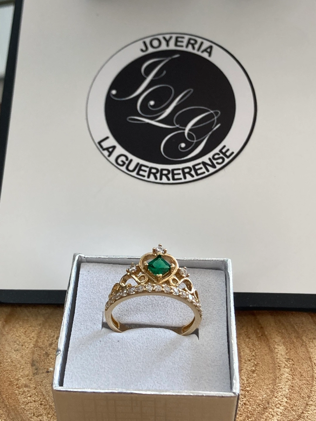 65Selling a beautiful real gold 14k ring with an emerald from Joyería La Guerrerense. It comes in its original box and is in great condition! Hermoso anillo oro 14k original en forma de corona con piedras zirconia ala venta medida 8. O si usted ocupa otro medida se puede arreglar con un costo extra. Hacemos reparación en oro y plata cambios de batería para los relojes tenemos el sistema de apartado en toda la joyería contamos con financiamiento Bendemo perfumería árabe se hacen arreglos florales con flor eterna al gusto del cliente