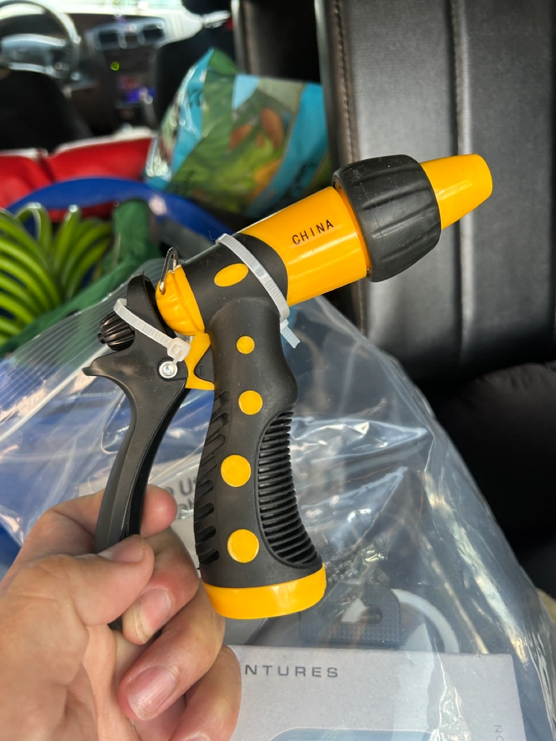 234Here's a garden hose nozzle with a black and yellow design!