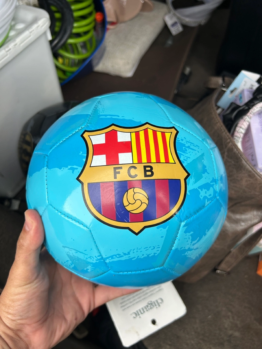 234Selling two soccer balls! One is black and the other is blue. Both have the FC Barcelona logo and the word BARCA on them.