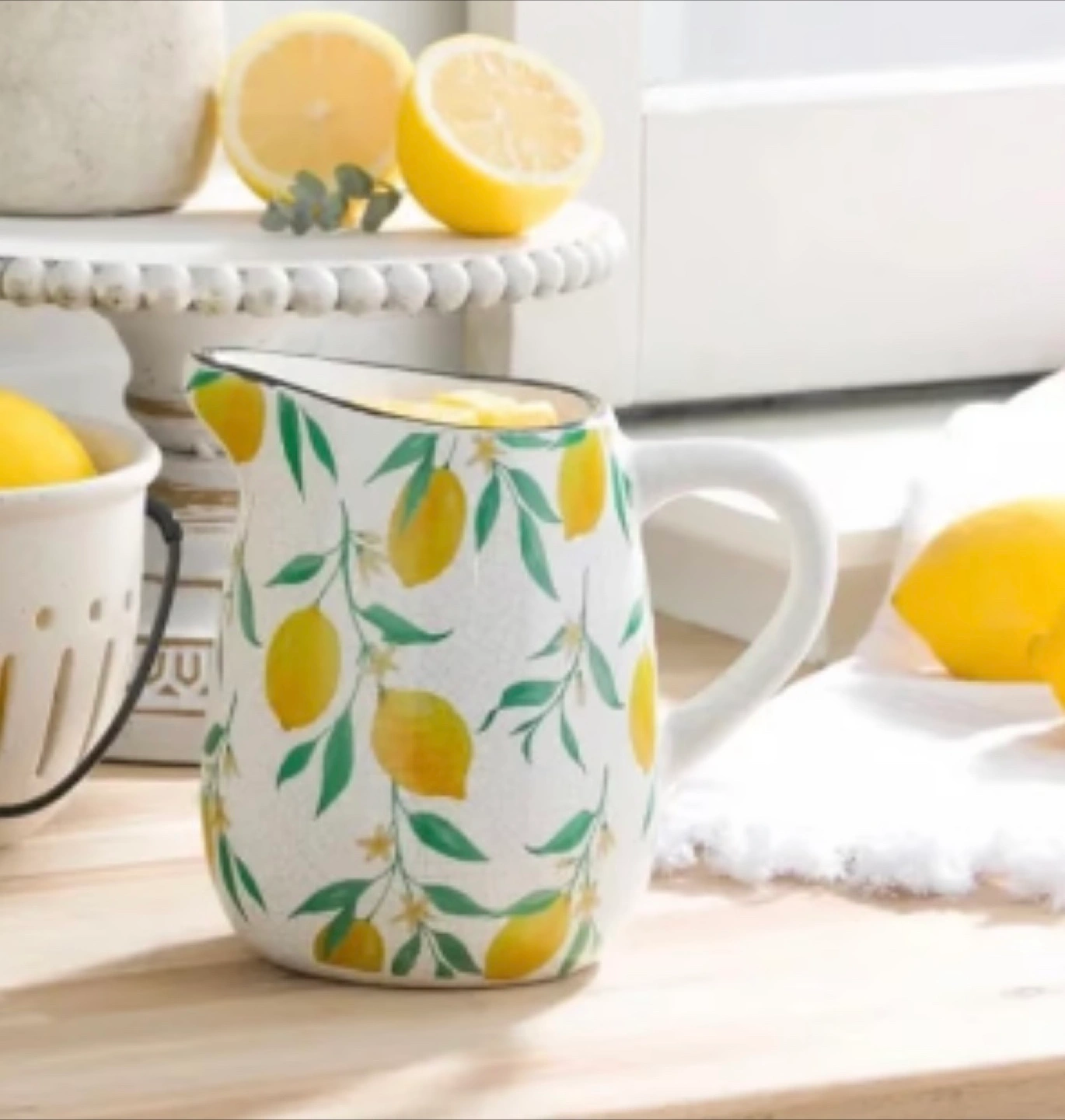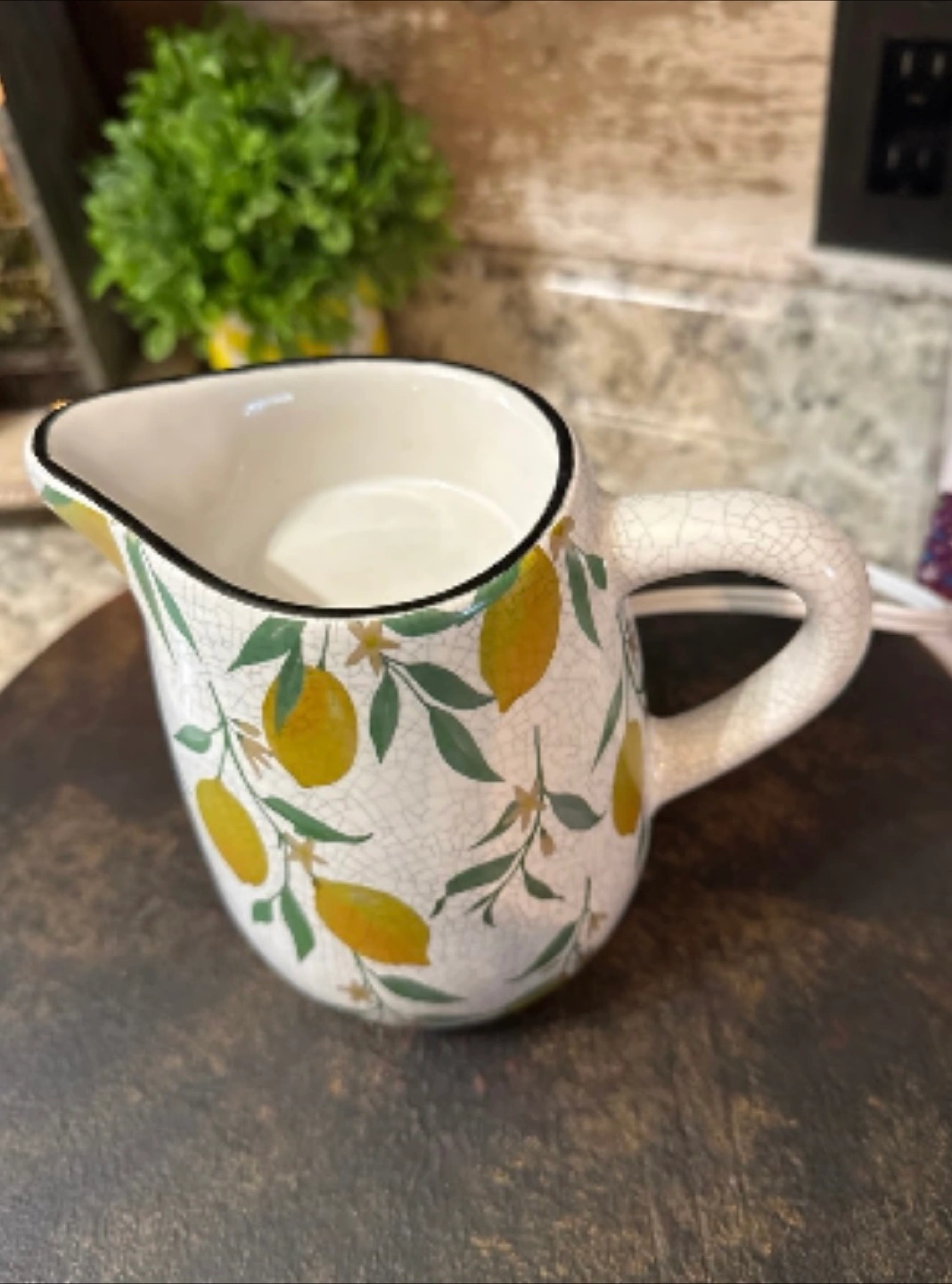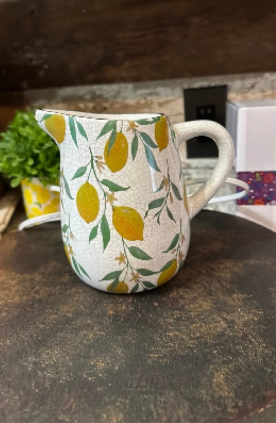 97I'm selling a Scentsy Lemon Grove pitcher! It's in great condition and comes with its original box. This charming pitcher features a delightful lemon design, perfect for adding a touch of freshness to your kitchen or dining area. Like new.