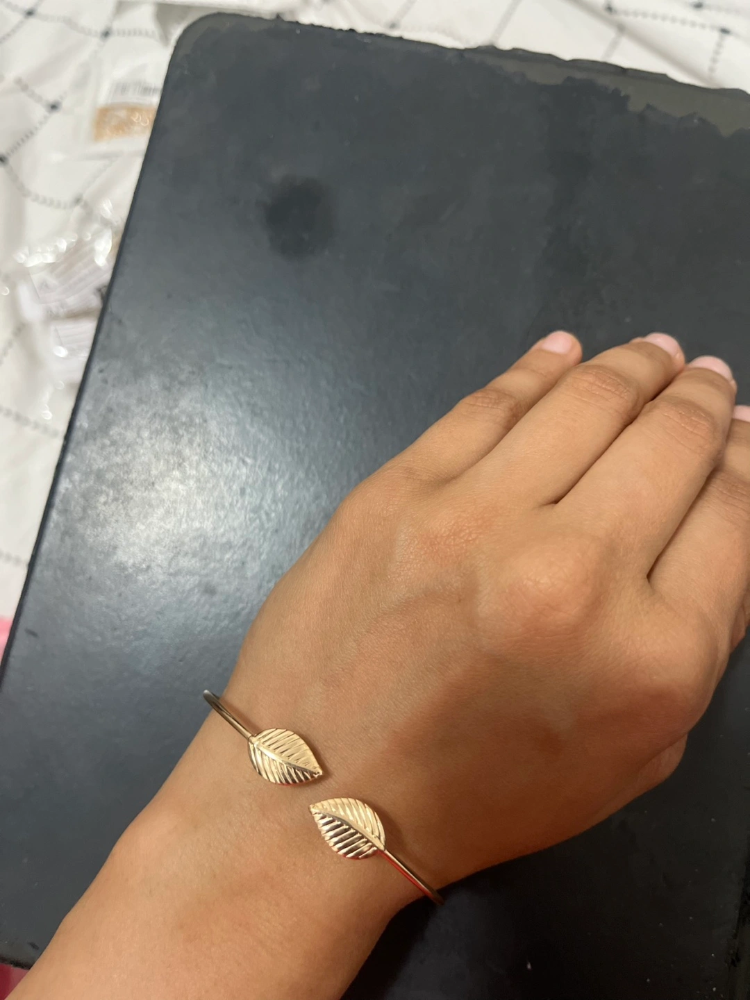670Selling a cute gold leaf bangle bracelet. It's in great condition and would be a lovely addition to any outfit!