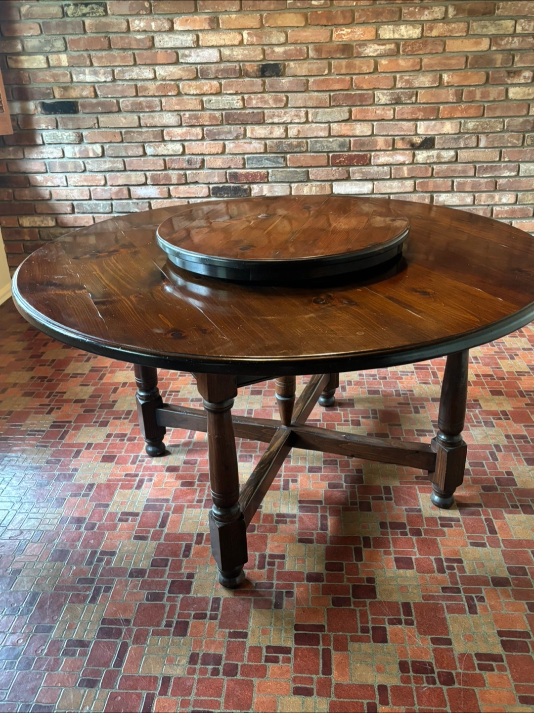 10Selling a round wooden dining table that's perfect for family dinners, game nights or gatherings. It features a built-in Lazy Susan, making it easy to share dishes. The table has a classic design and sturdy construction, adding a touch of elegance to any dining room.