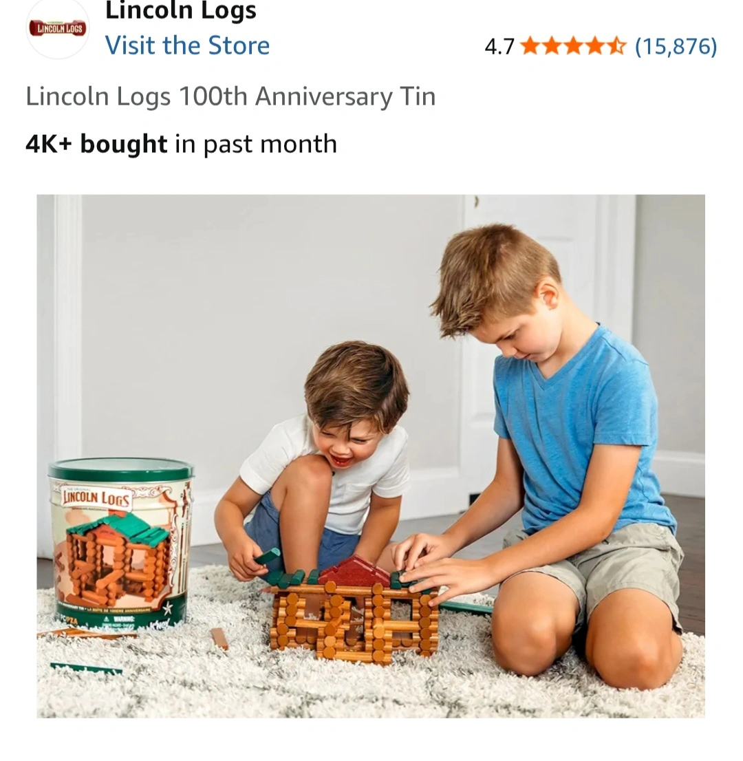 Get ready for some classic building fun with this Lincoln Logs 100th Anniversary Tin! This set includes a variety of wooden logs and pieces to construct your own cabins, forts, and more. Perfect for sparking creativity and imaginative play for builders of all ages