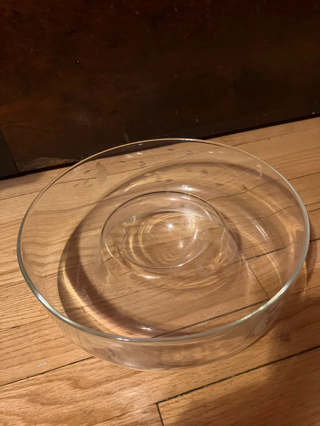 Selling a glass chip and dip bowl. It's in great condition and ready for your next gathering! Thick glass with beautiful etching on the sides