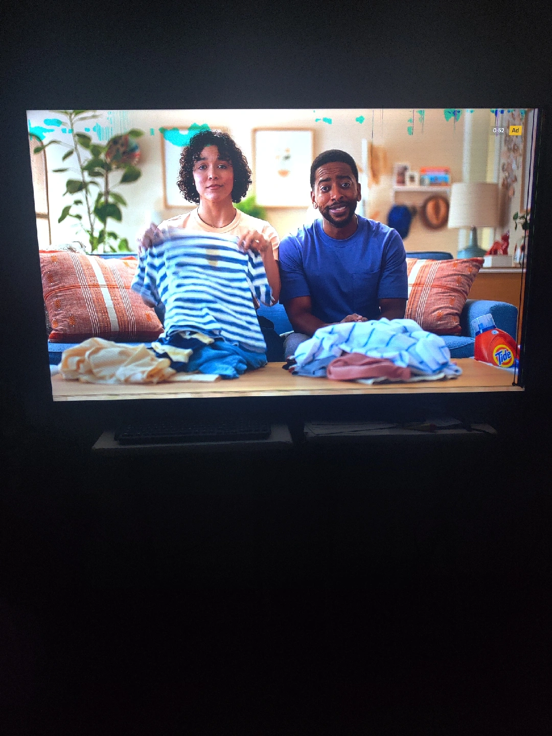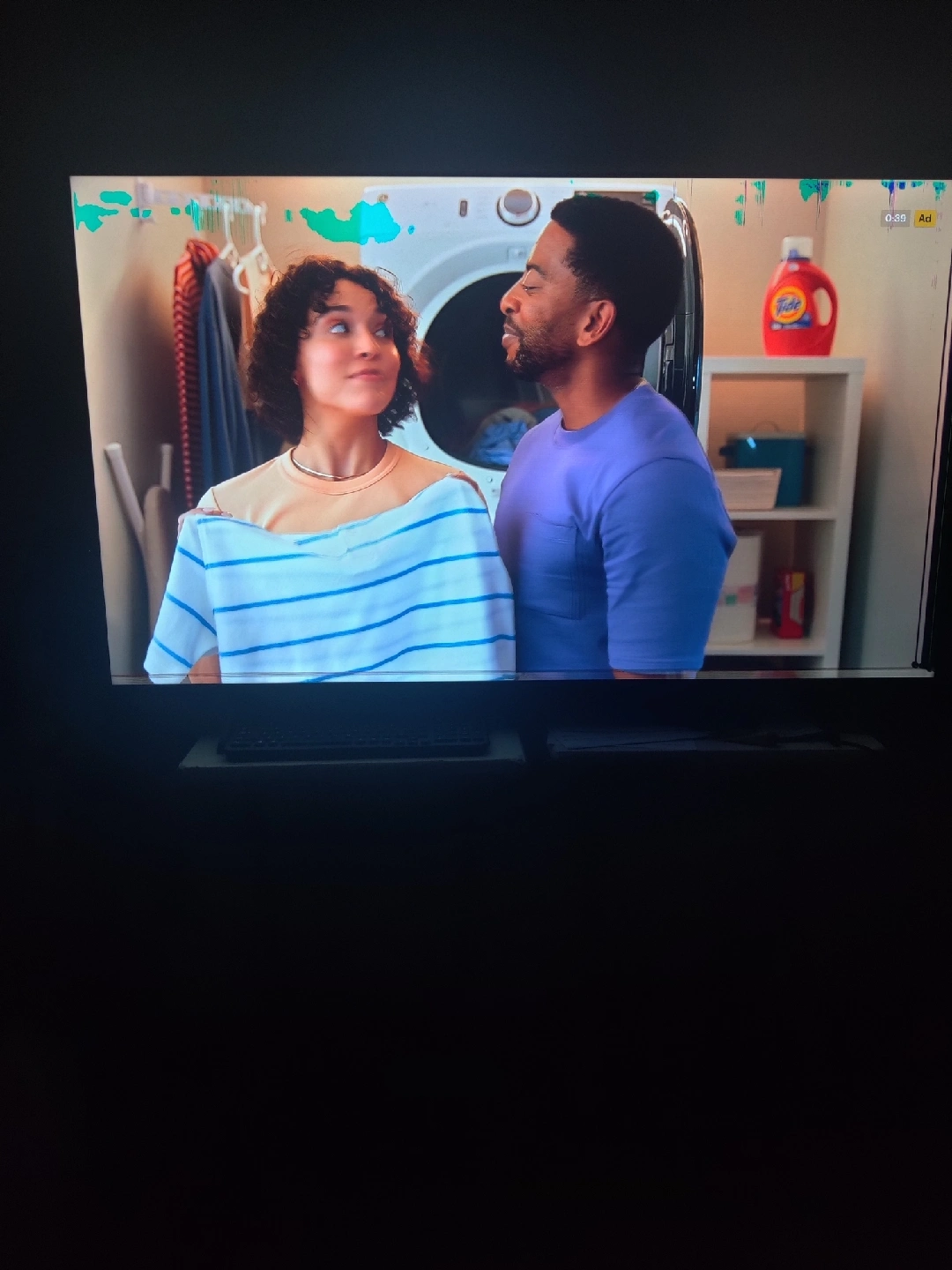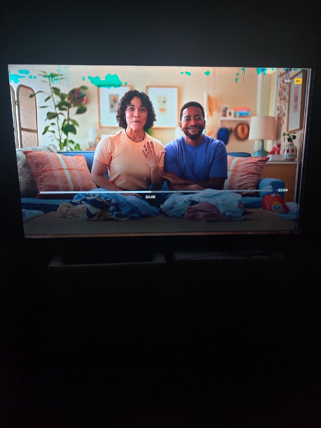 Selling my brand new TV, had it for a few weeks accidentally pressed my thumb on the bottom right corner and the screen protector started de-pixelating. As you can see from the blue spots during the commercial on the tv. Works fine though otherwise, selling it for the main board/power supply for parts unless you can fix the screen.