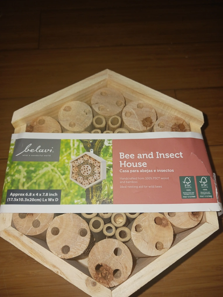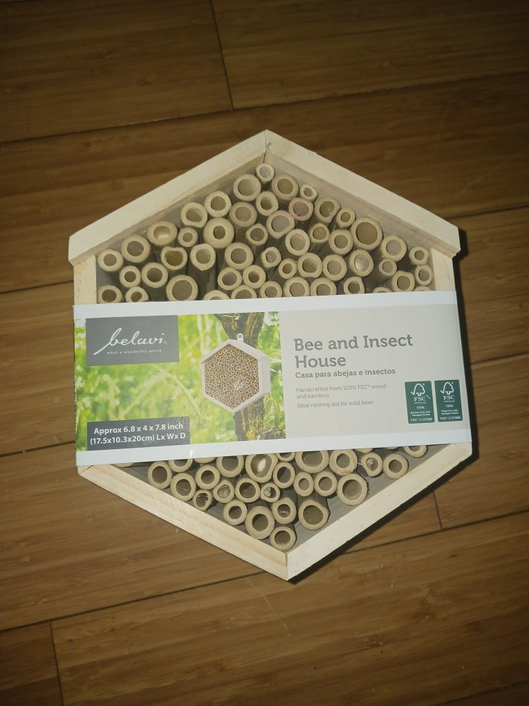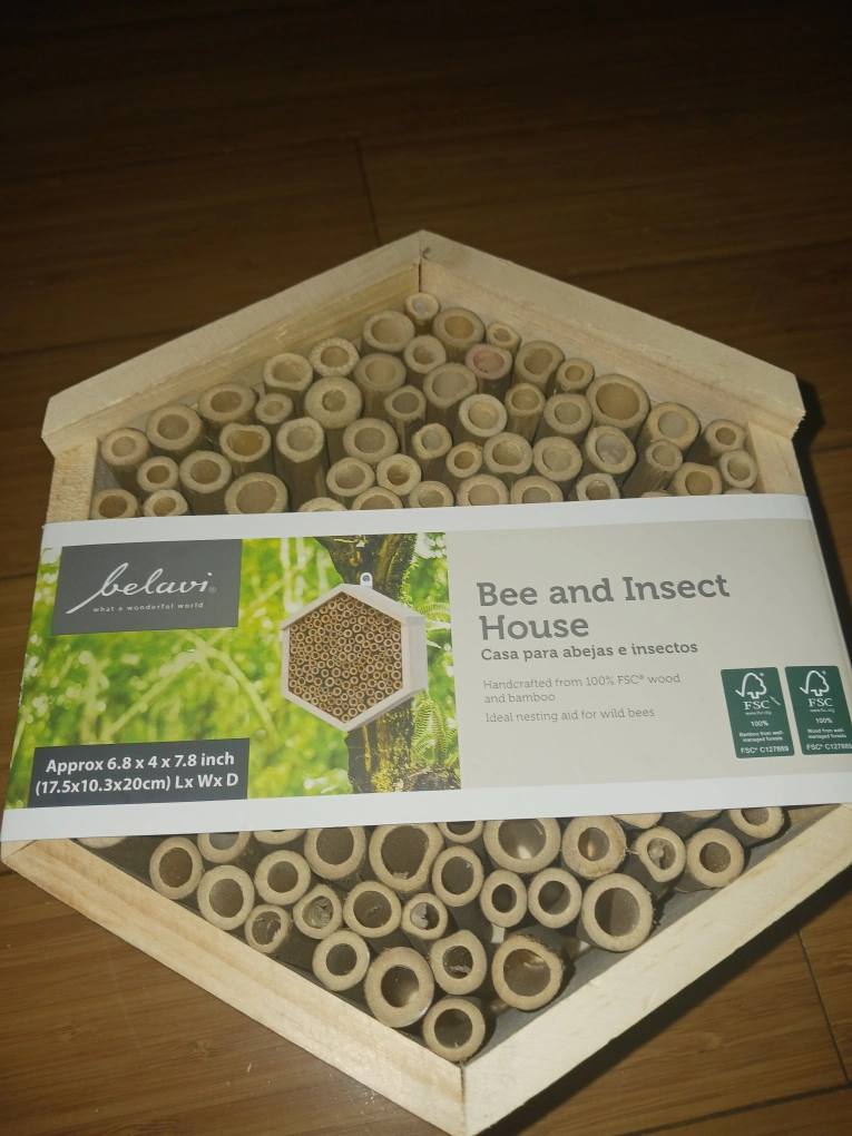 184Brand new Belavi Bee and Insect House! It's handcrafted from 100% FSC wood and bamboo, making it ideal nesting for wild bees. Approximate dimensions are 6.8 x 4 x 7.8 inch (17.5x10.3x20cm) Lx Wx D
