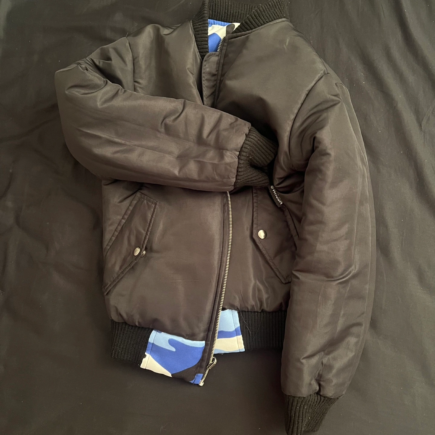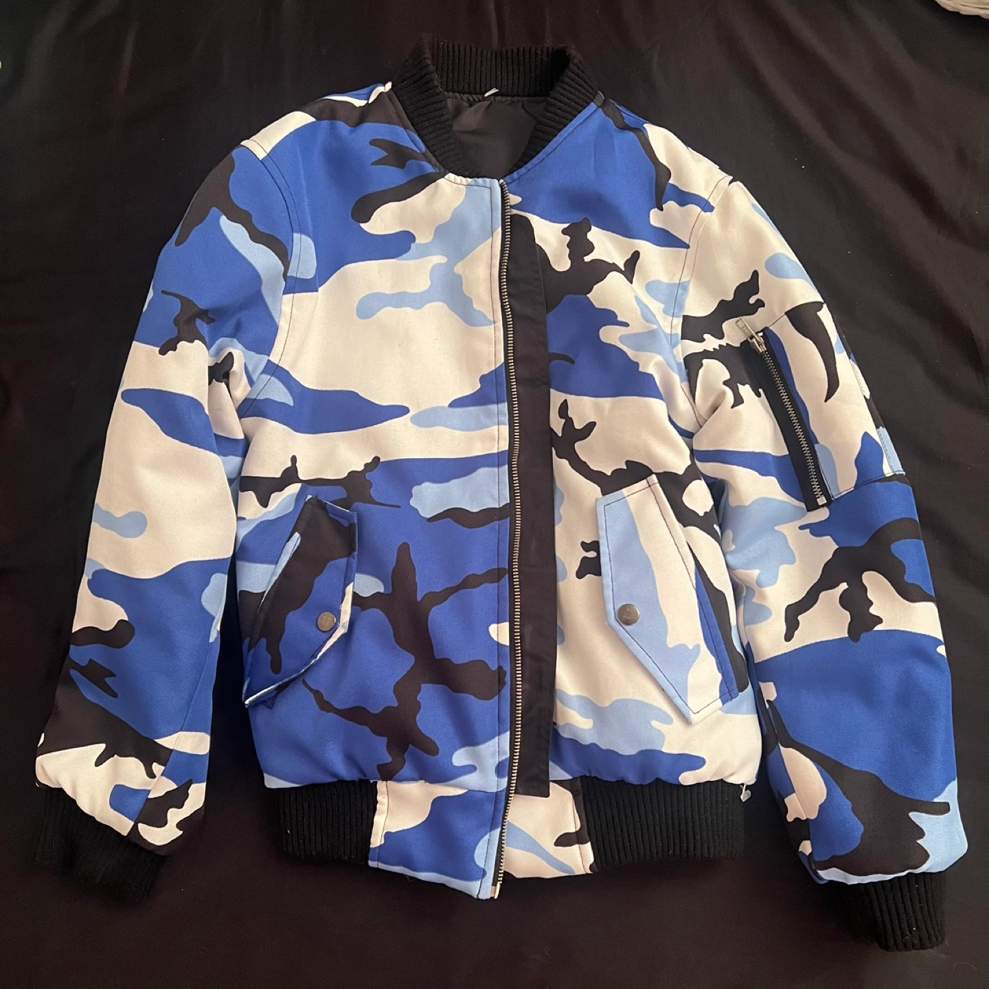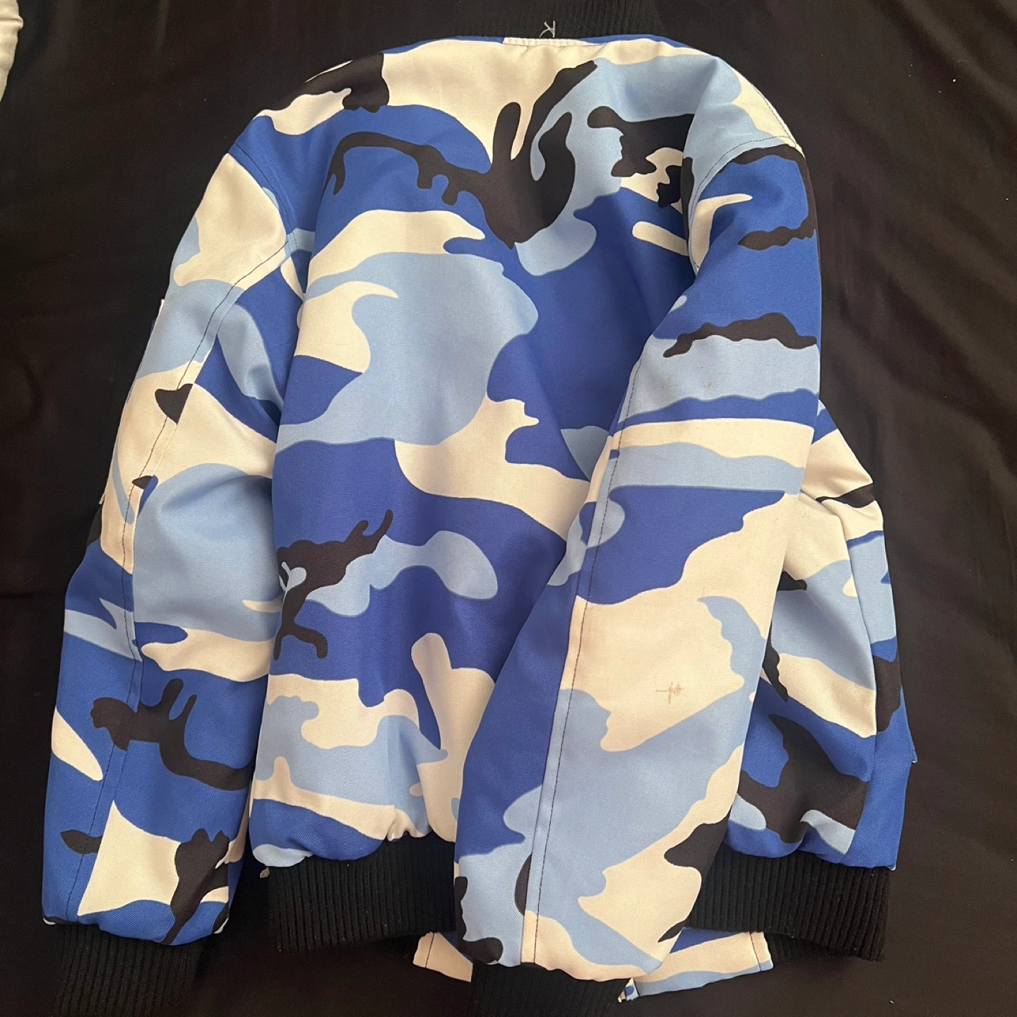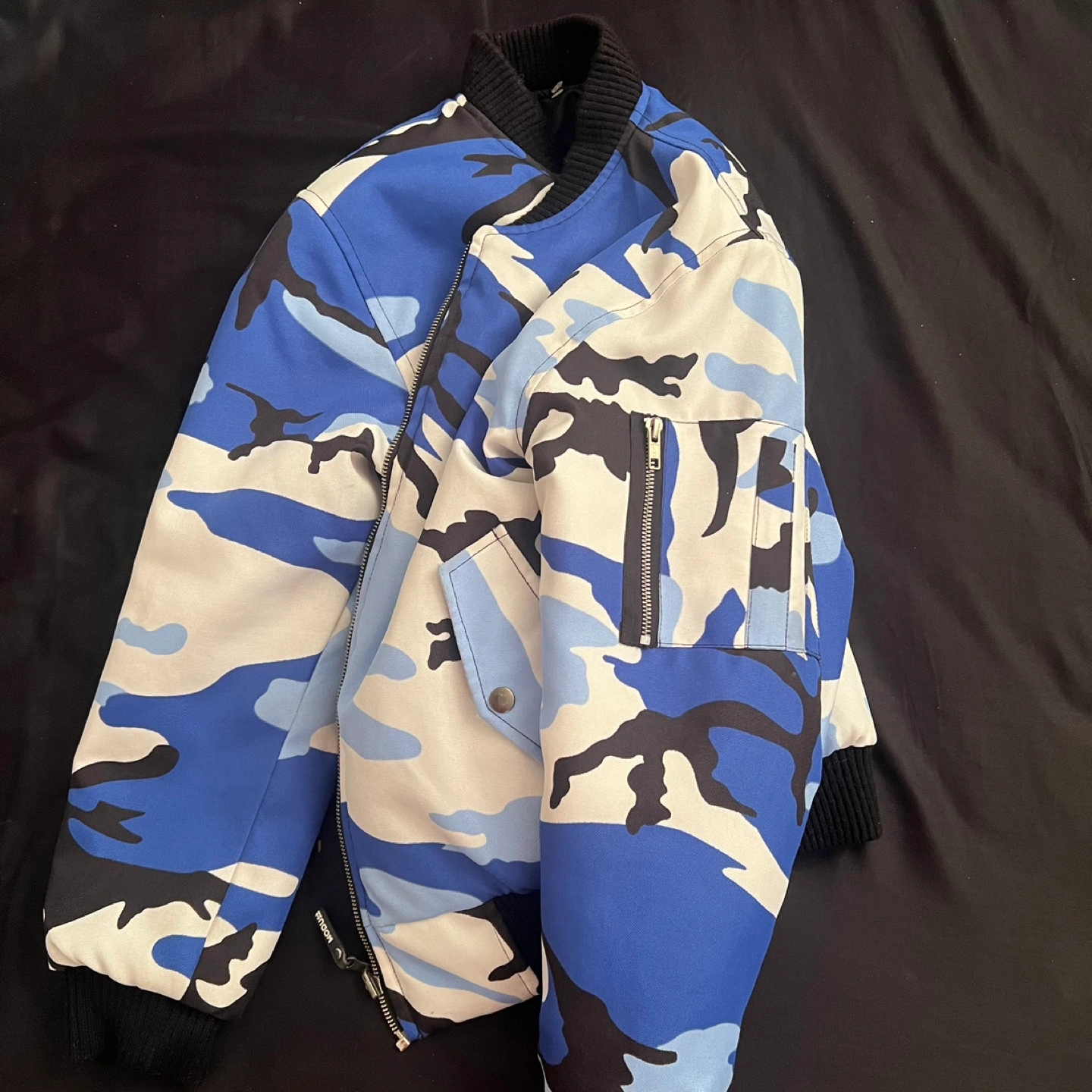 Super cool unisex reversible blue & white camo OR black bomber jacket! I received this as a gift a while ago but never wore it, almost perfect condition! Couldn’t find a tag except “MODU XS” inside but best fits a Women’s XS-S or Men’s S. Shoulder-to-shoulder 17”, shoulder-to-hem 22”. Super heavy & thick, will keep you warm! Has pockets in the front and a zipper detail on the right arm. No flaws except for a tiny stain on the back of the left arm as pictured in the 3rd picture. Please message me with any questions!! I can also drop this off in Manhattan or LIC (Queens) NYC. #streetwear #bomberjacket #jacket #unisex #camo