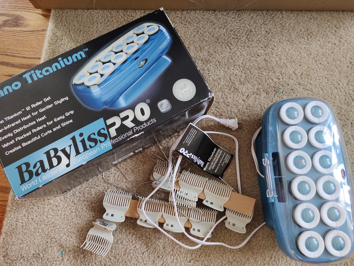Selling a BaBylissPRO Nano Titanium 12 Roller Set! It features far-infrared heat for gentler styling and evenly distributes heat. The velvet flocked rollers are designed for easy grip and create beautiful curls and shine. It also comes with the box! Only used once.