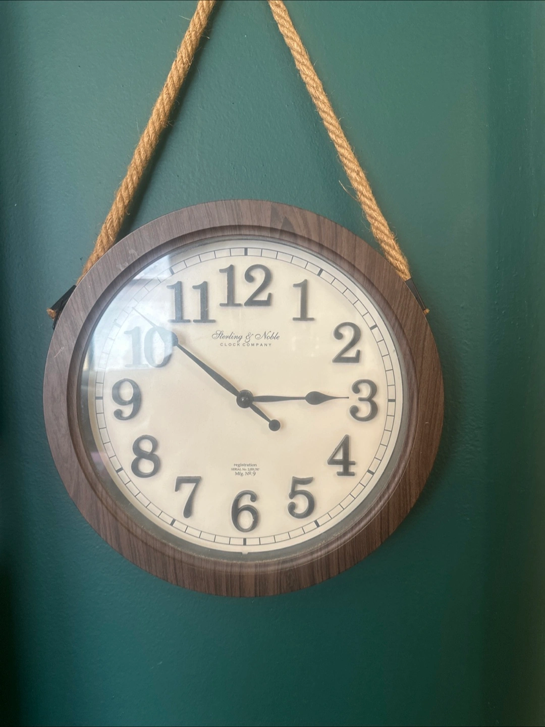 Selling a wall clock from Sterling & Noble Clock Company! It features a classic design with a rope hanger. Perfect for adding a touch of charm to any room