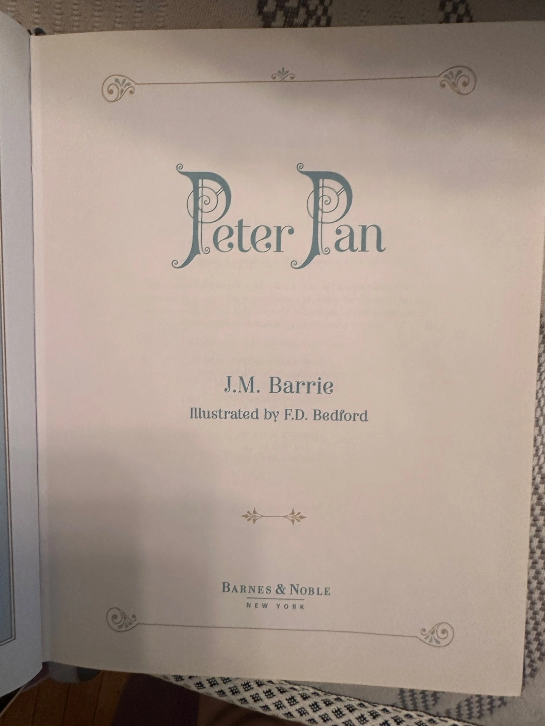 Selling a beautiful copy of Peter Pan by J.M. Barrie, published by Barnes & Noble. It's in great condition and features lovely illustrations by F.D. Bedford. A wonderful addition to any bookshelf!