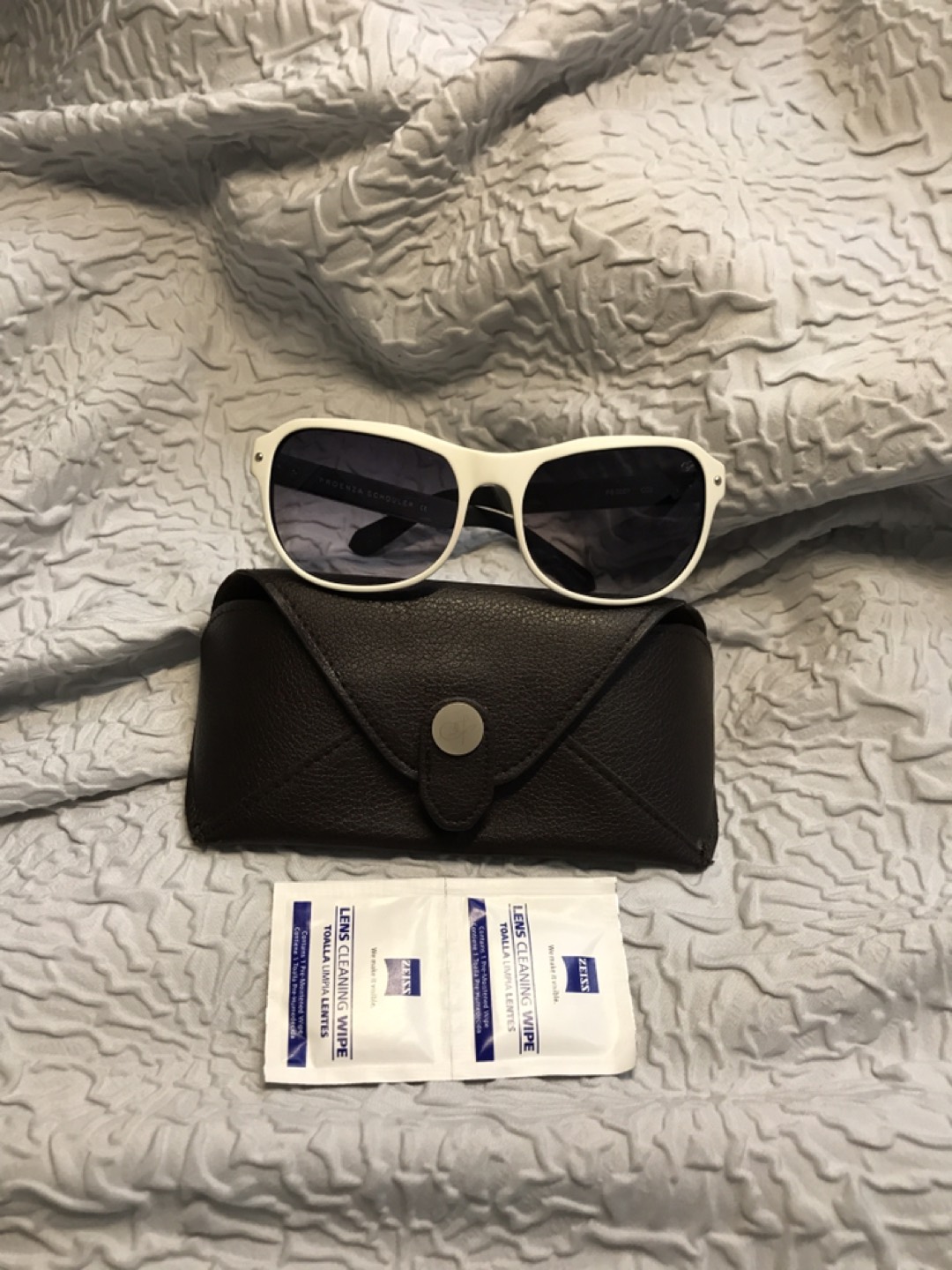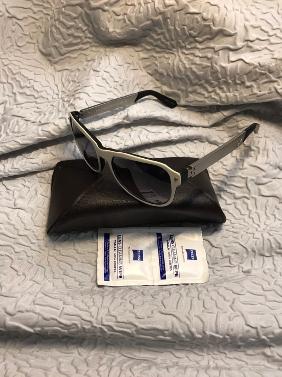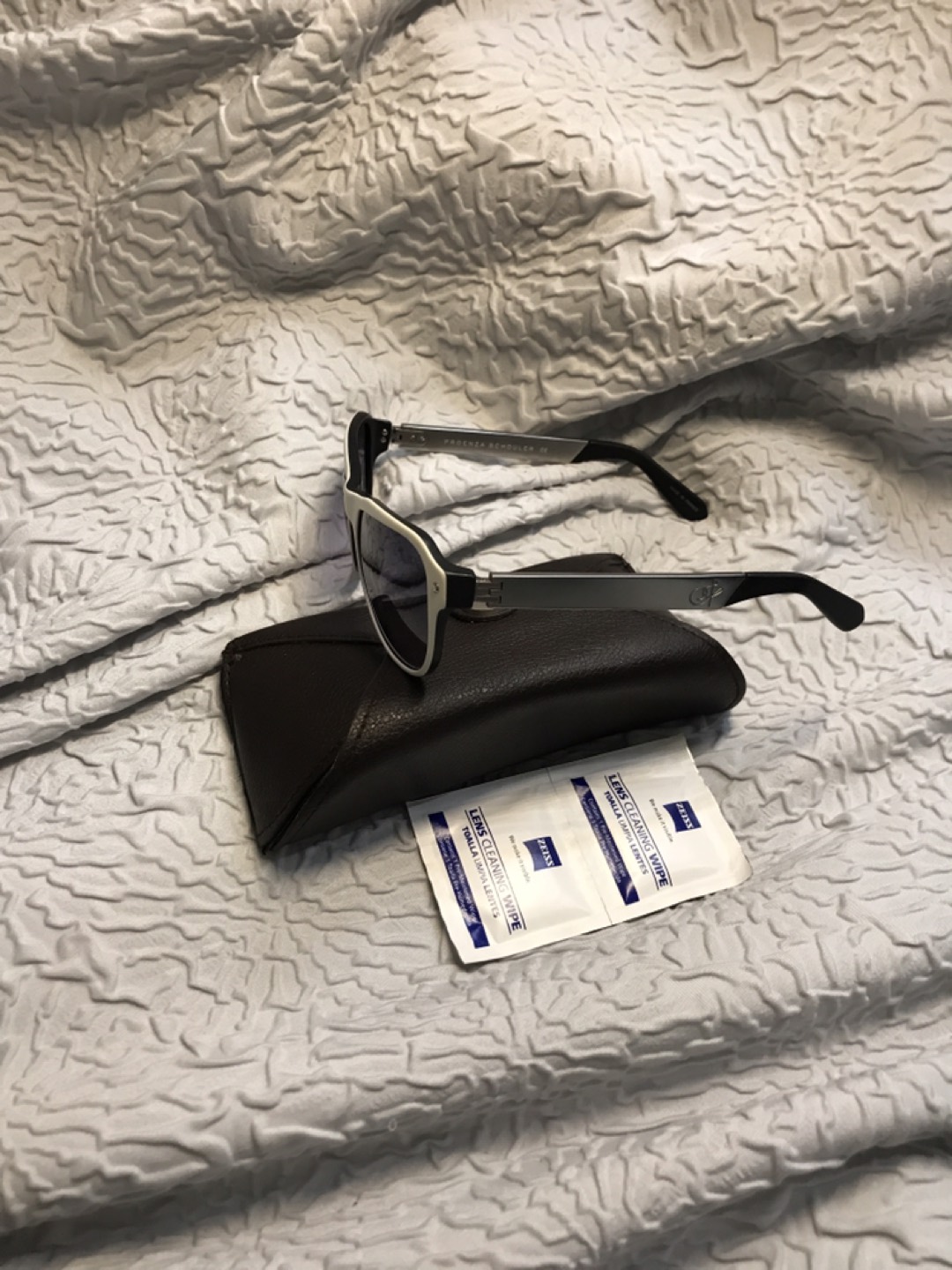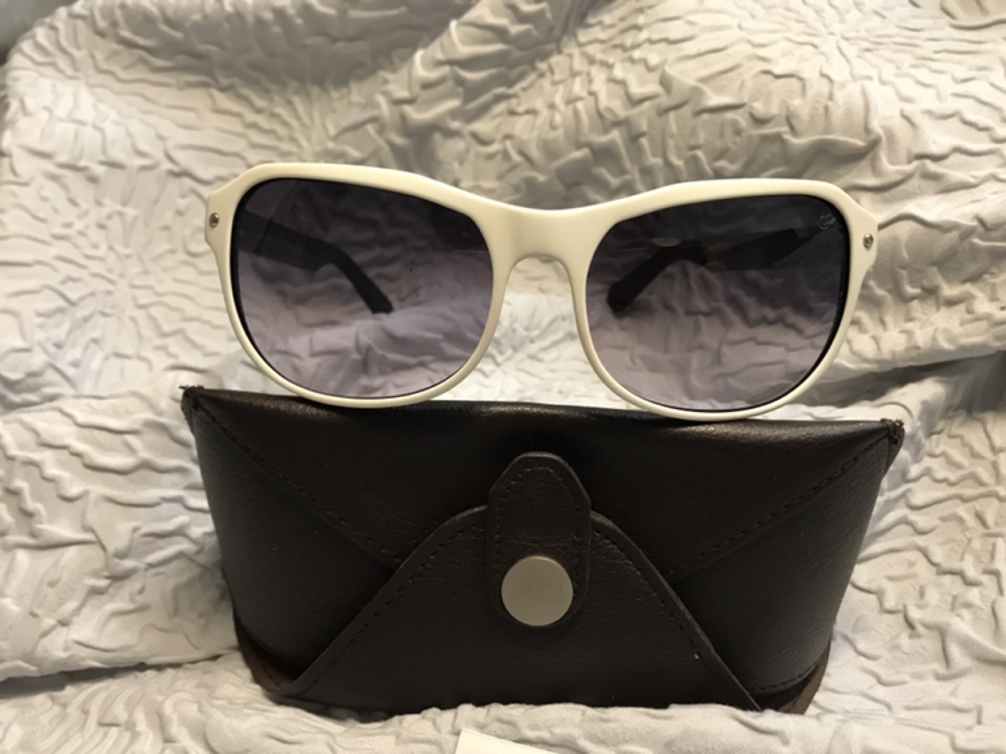 No scratches, original design, made in France. Ivory and black frame and hinges are matt silver.