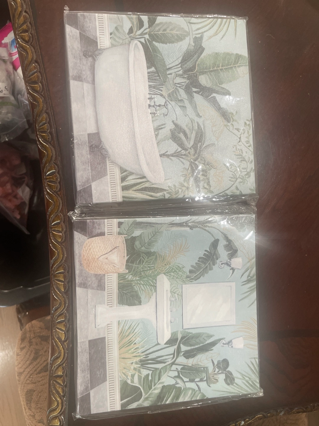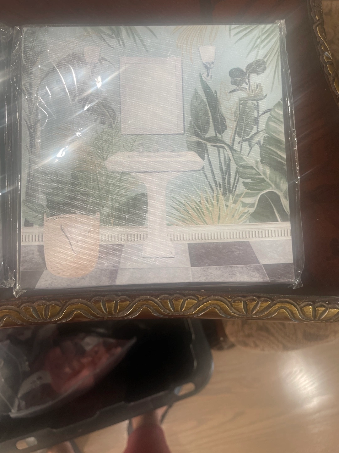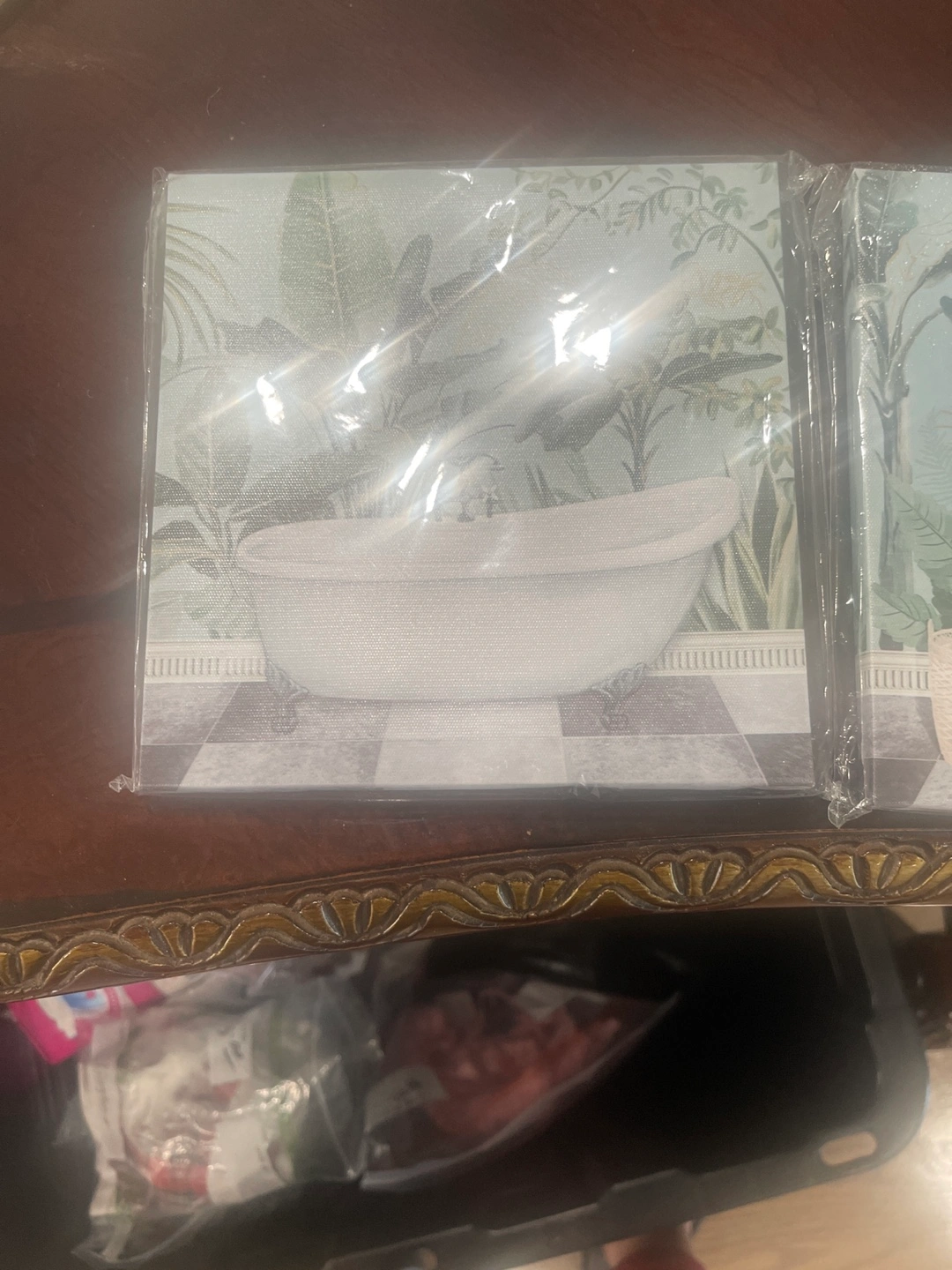 196Selling a set of 2 bathroom-themed wall art pieces! They're still sealed in their original packaging, so they're in perfect condition. The prints feature a stylish bathroom design with lush greenery. Perfect for adding a touch of elegance to your bathroom decor