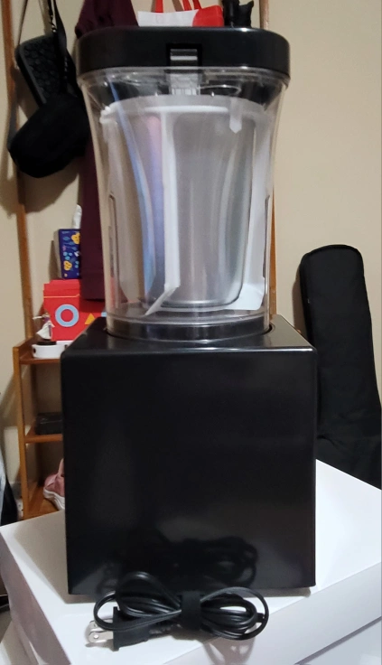 This machine was only used once. While the front sticker is peeling slightly and the inner canister has minor, barely noticeable dings from ice, it's otherwise in perfect working order.