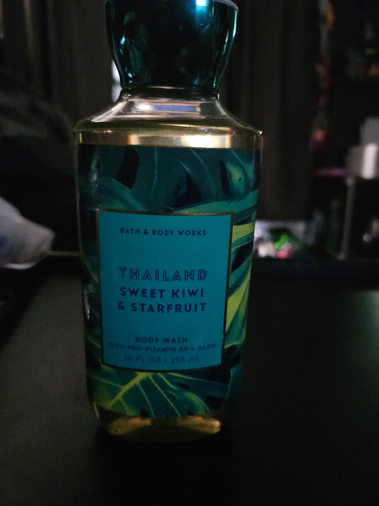 666Selling a bottle of Bath & Body Works body wash in the Thailand Sweet Kiwi & Starfruit scent! It features fragrance notes of golden kiwi, juicy starfruit, and solar woods. It's made with pro-vitamin B5 and aloe, with a gentle non-drying formula that's nourishing and rich. Sells for $17.95