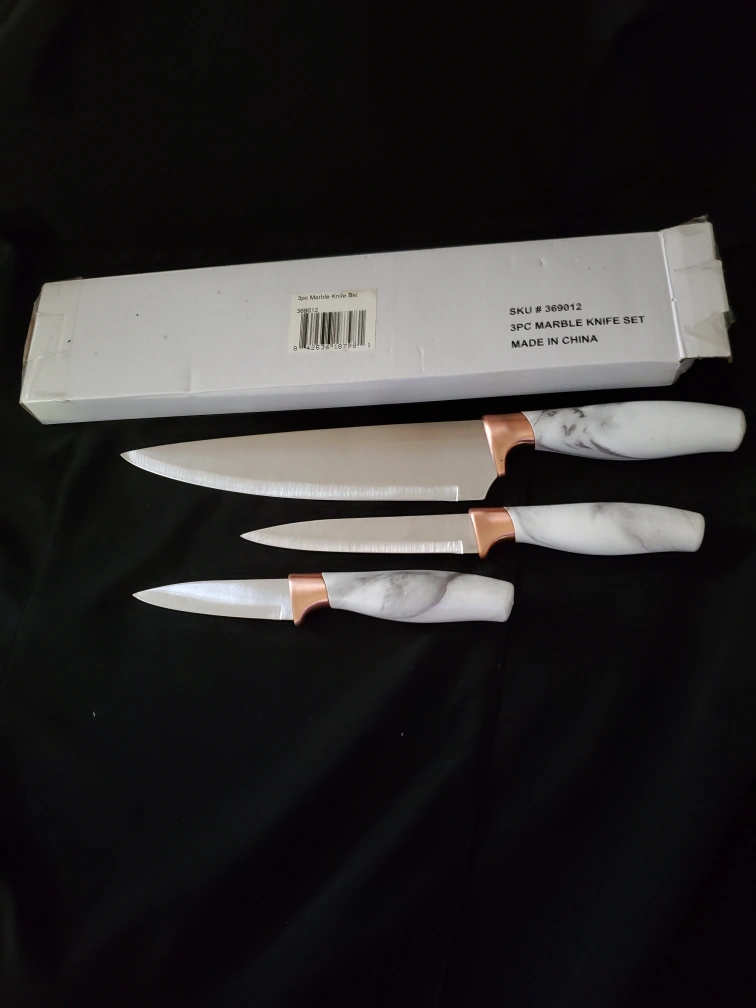 Buy & Sell3pc Marble Knife Set - New in Box!3pc Marble Knife Set - New in Box!$20Selling a brand new, in-box 3-piece marble knife set! The set includes three knives with marble handles and copper-colored accents. Perfect for adding a touch of elegance to your kitchen!ConditionNew1 chats·0 favorites·18 viewsSELLERverifiedJeffreyMill Basin700 reviewsWHERE TO MEETGeorgetown Plaza