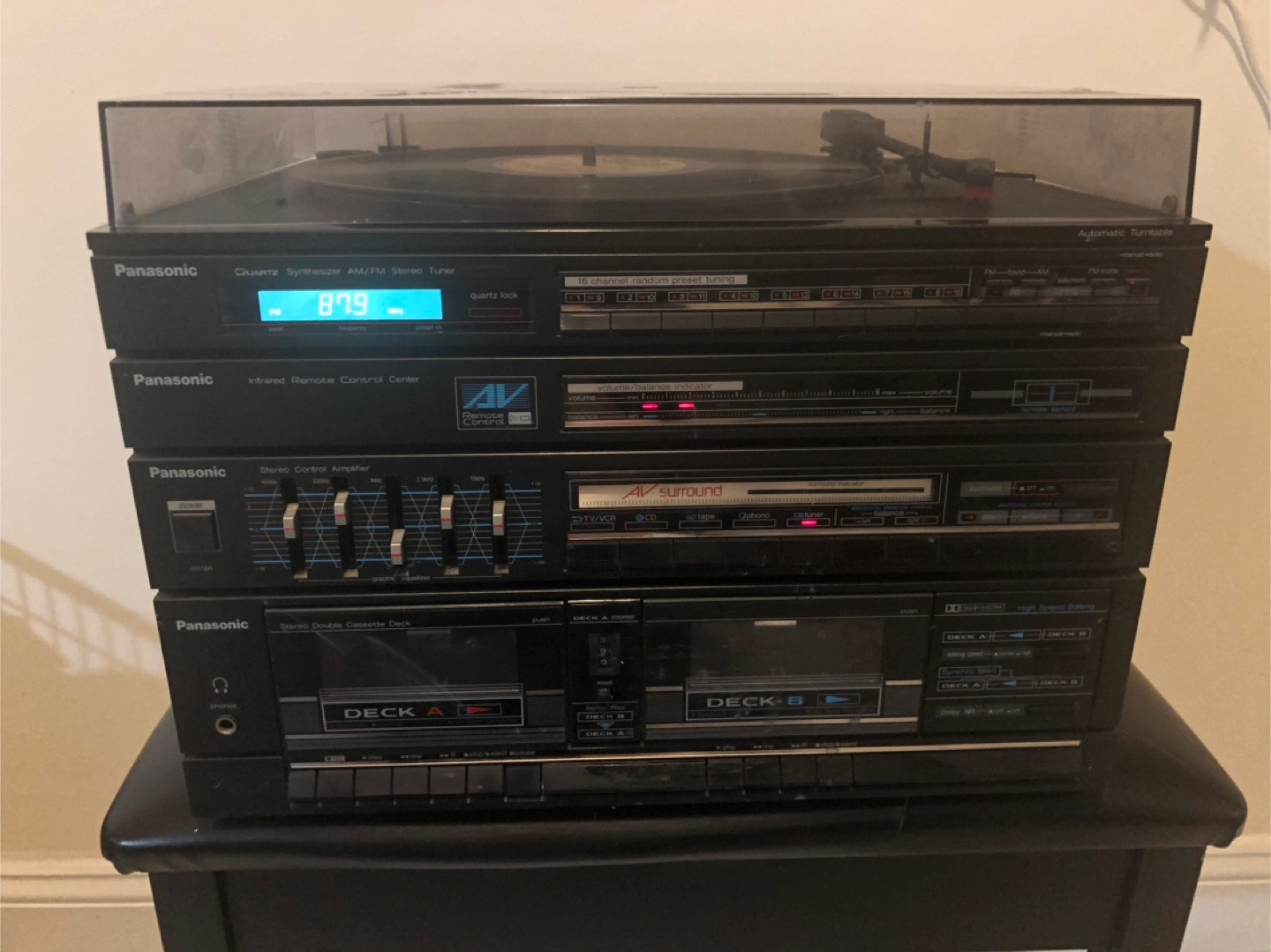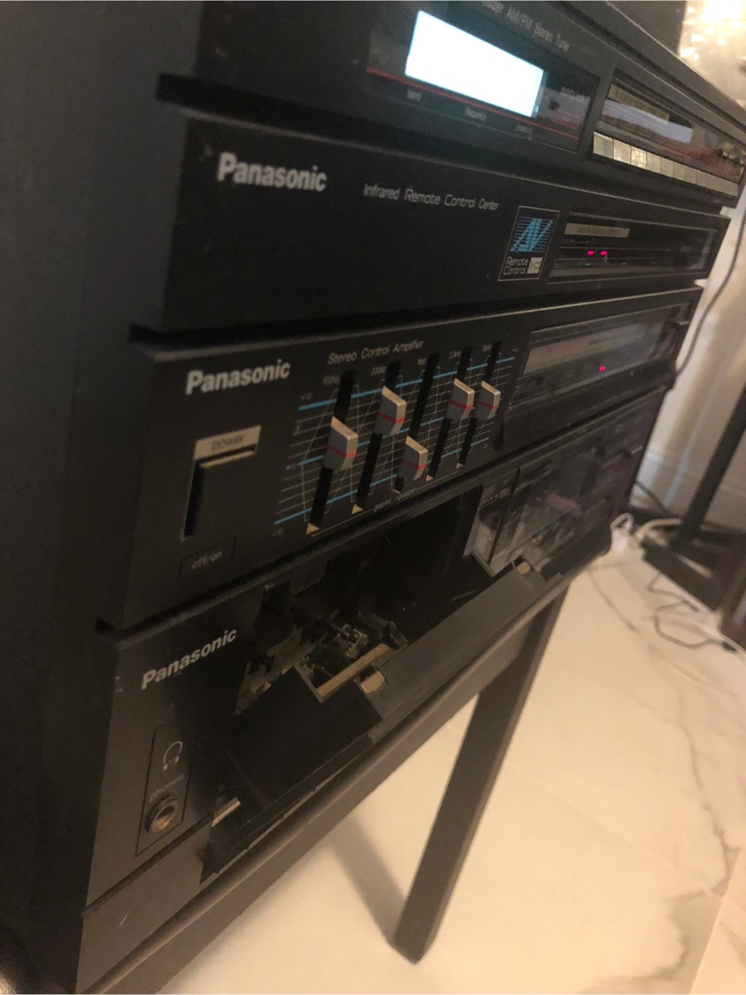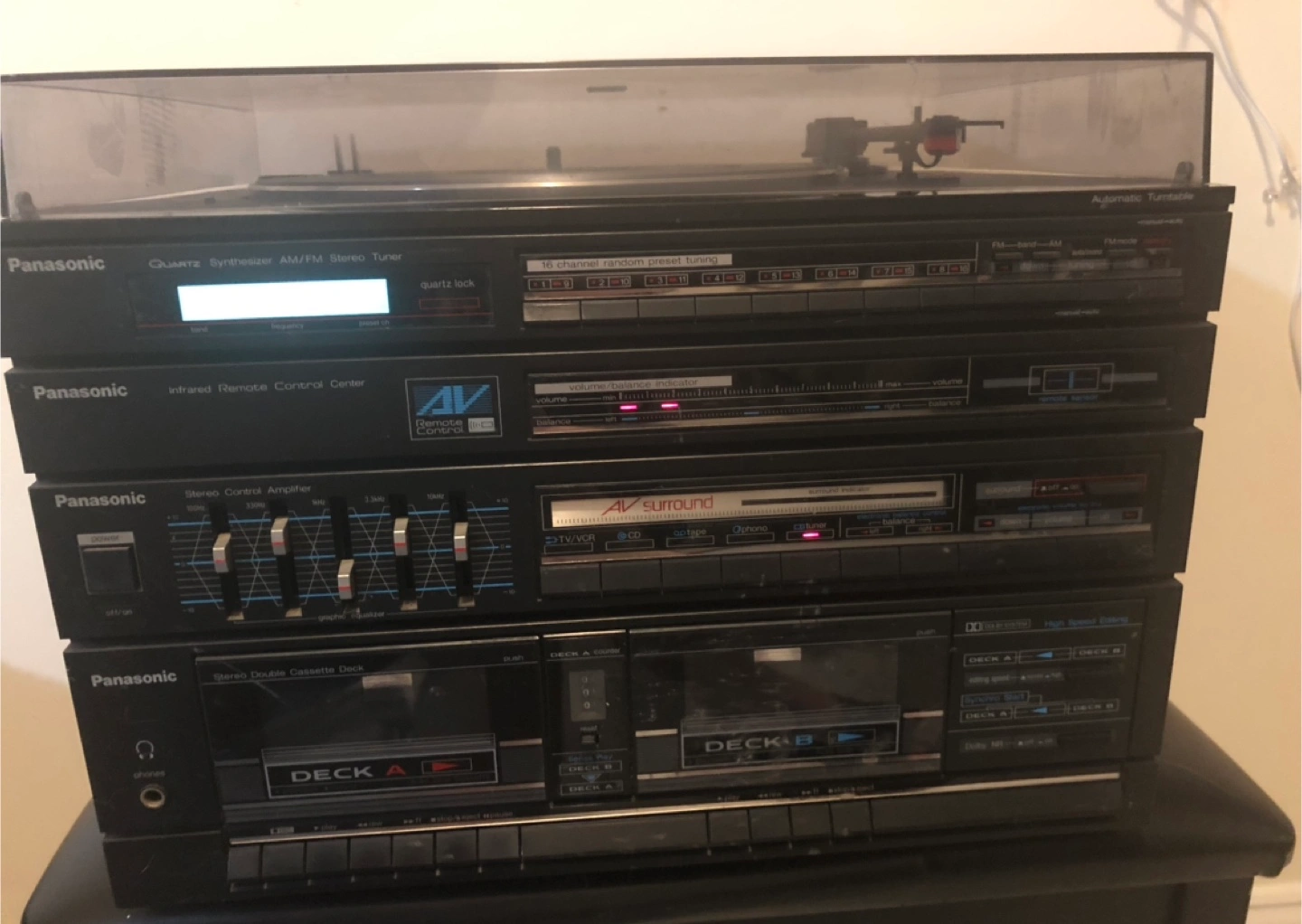 Panasonic AM/FM Stereo Tuner with Turntable and Double Cassette Player. Speakers not included.