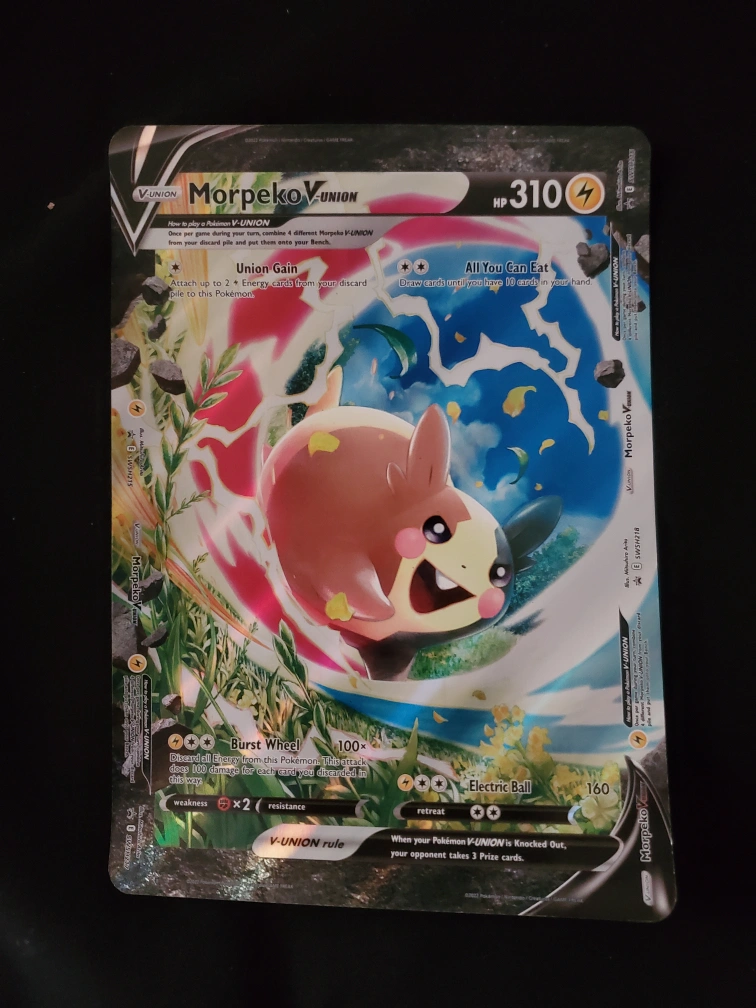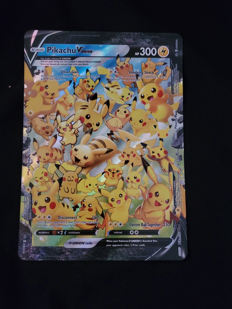 Selling a lot of (5) Jumbo Pokemon trading cards. Includes Mimikyu EX, Morpeko V-UNION, Pikachu GX, Regieleki V, and Pikachu V-UNION