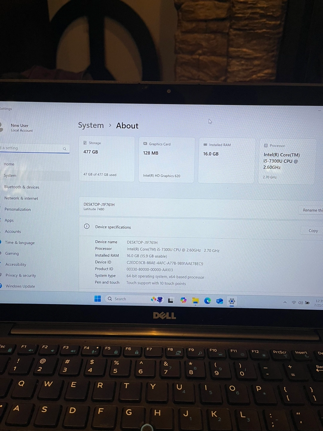 Selling a Dell Latitude 7480 touch screen laptop. It has an Intel Core i5-7300U processor running at 2.60GHz. It comes with 16GB of installed RAM and a 477GB storage drive. The graphics card is an Intel HD Graphics 620.