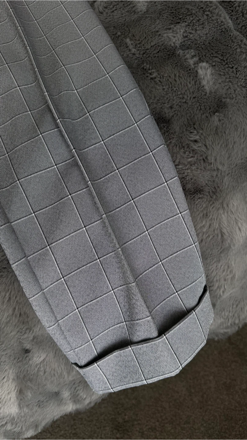 • Color: Gray with subtle windowpane check pattern