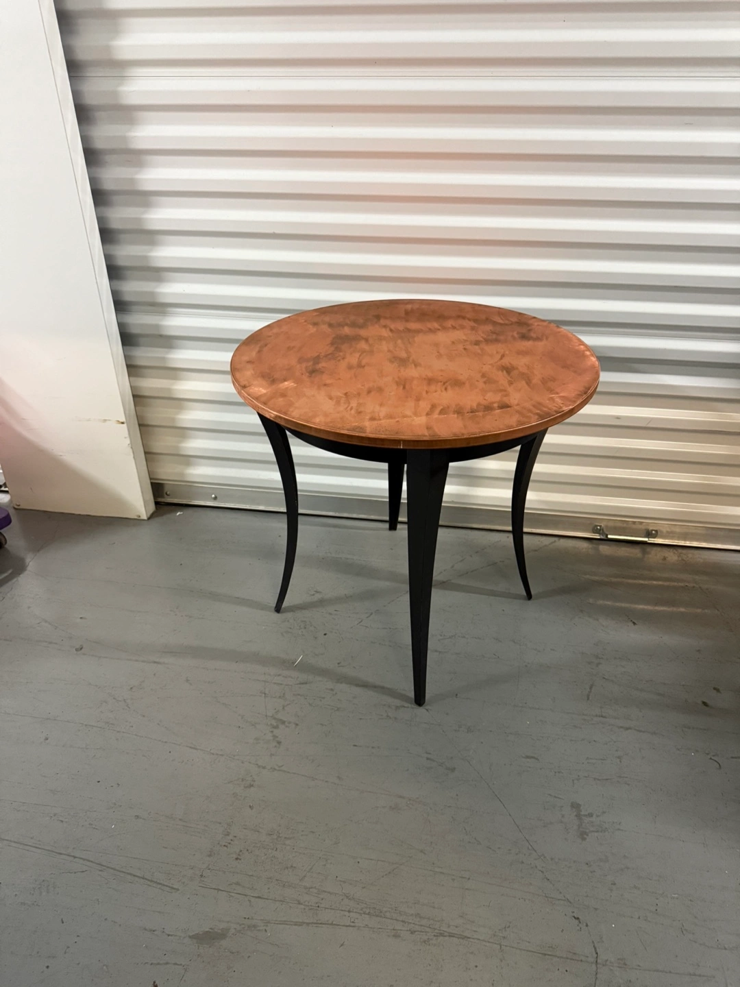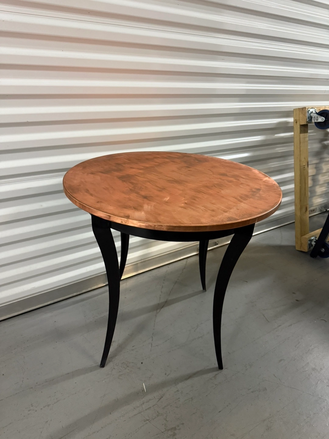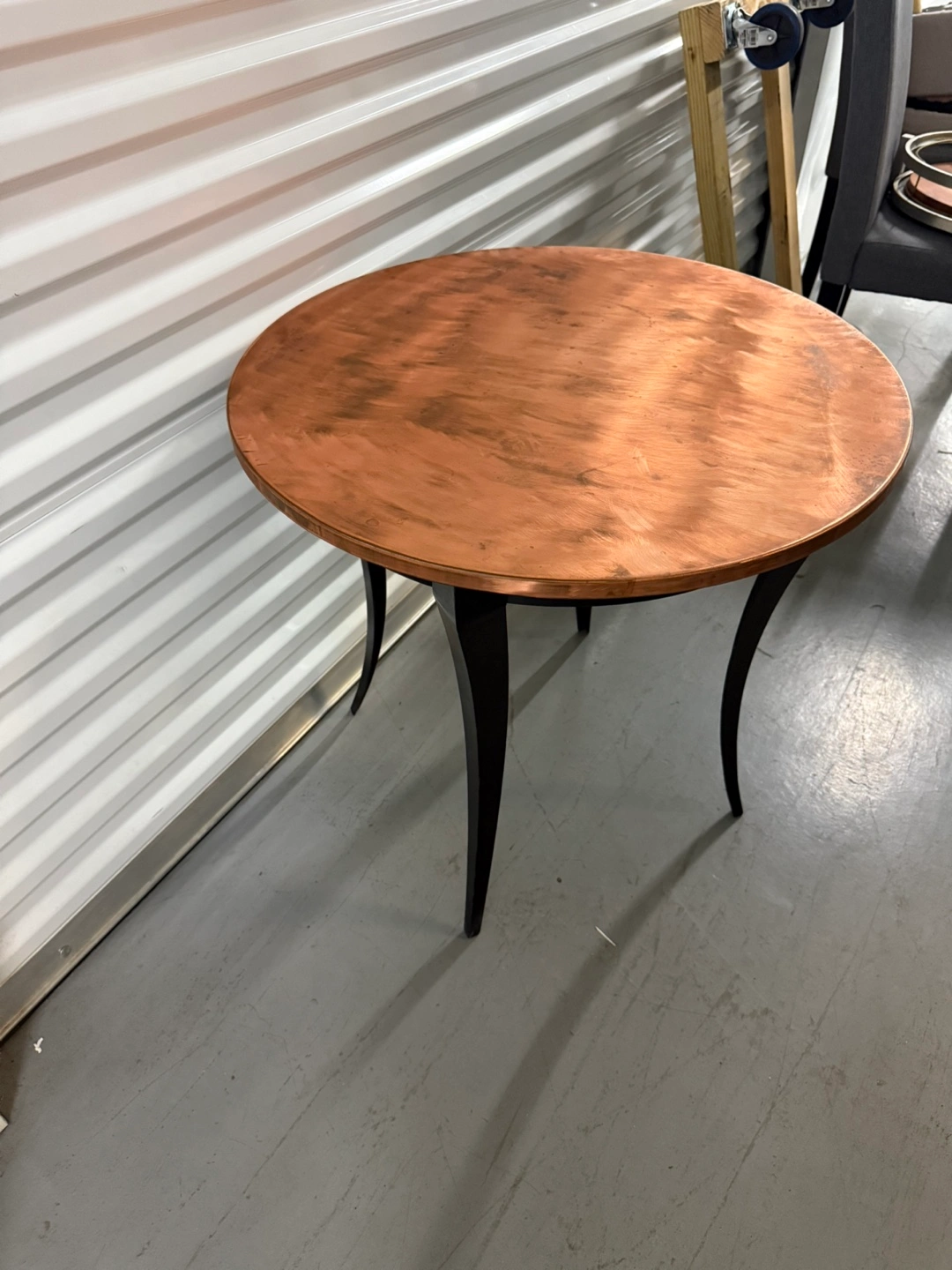 Selling a unique round accent table with a beautiful copper top and elegant black legs! It's in great condition and would add a touch of sophistication to any room