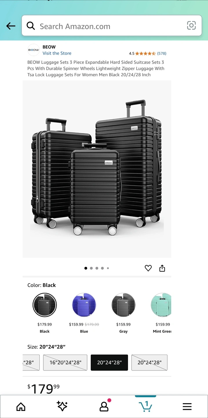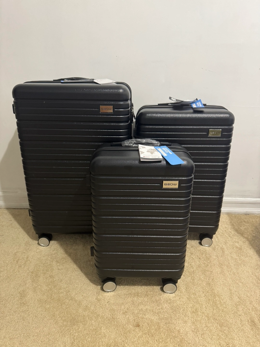 35This is a BEOW 3-piece luggage set in black. It's an expandable, hard-sided suitcase set with durable spinner wheels. It also features a TSA lock. Perfect for your next trip!