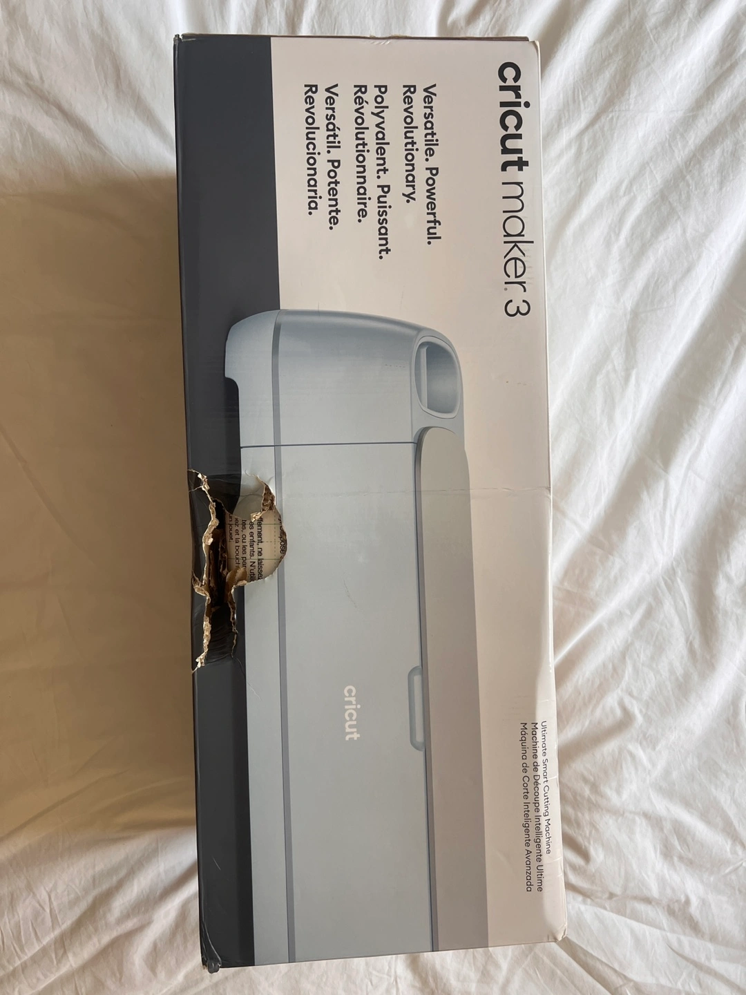 Selling a Cricut Maker 3. Damage to the box, otherwise the item has never been opened / used. Received as a gift.. another hobby I haven’t gotten to. Happy to provide photos of the interior, etc.