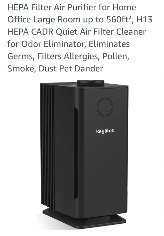 Selling a Keylitos HEPA Air Purifier, perfect for a home office or large room up to 560ft²! It has an H13 HEPA CADR quiet air filter cleaner. It is designed to eliminate odors, germs, filters, allergies, pollen, smoke, and dust pet dander