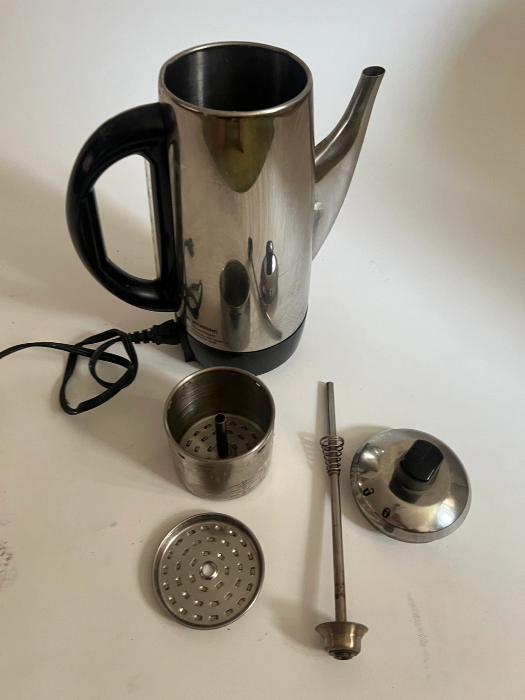 Selling a vintage Electric Waring coffee pot! It's in good condition and comes with all the components shown in the picture. Perfect for brewing a classic cup of coffee