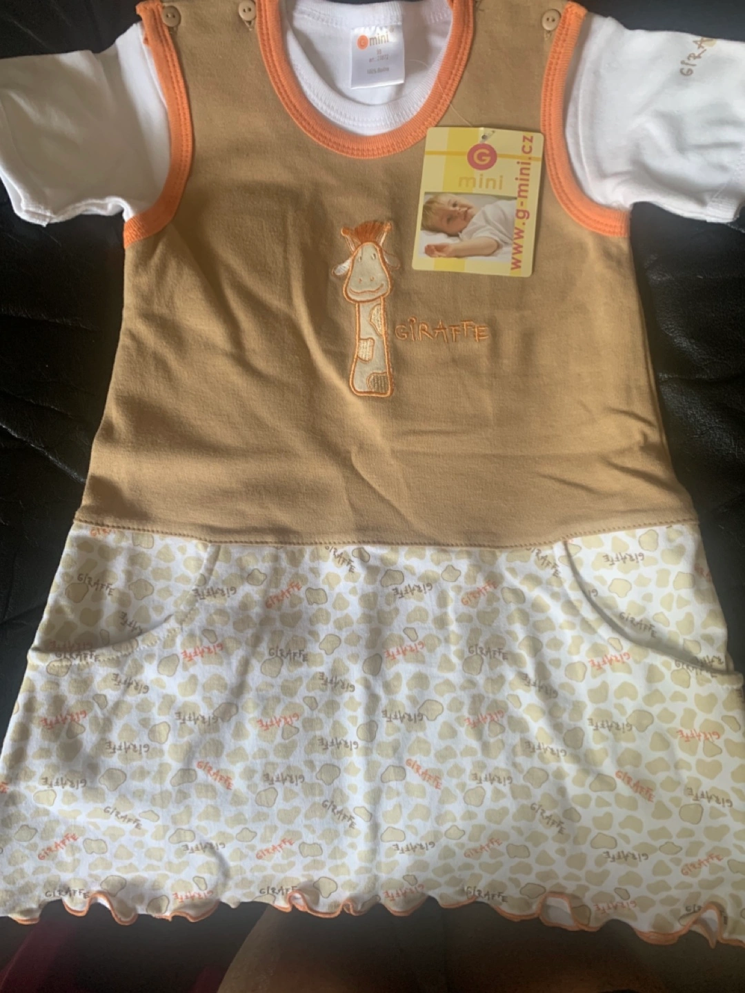 BRAND NEW With Tags Toddler Dress 2 piece Giraffe motif 100% Quality cotton from Europe Size 98 EU - Fits average 3-4 year old Super cute Nice Christmas gift! No smoke/pets Giftable