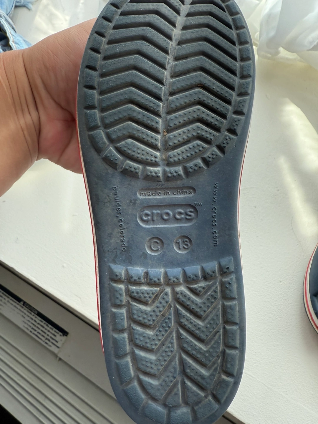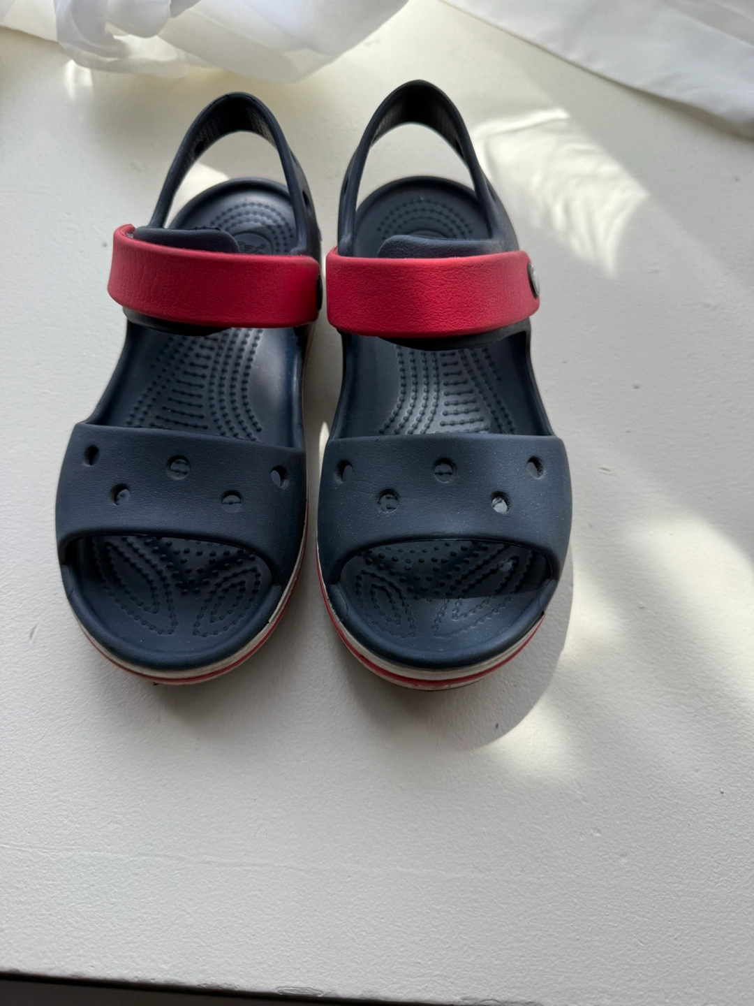 Selling a of Crocs Kids' Crocband Sandals in size 13. They're in great shape and ready for a new owner! The color is a nice navy with red accents. Perfect for summer adventures