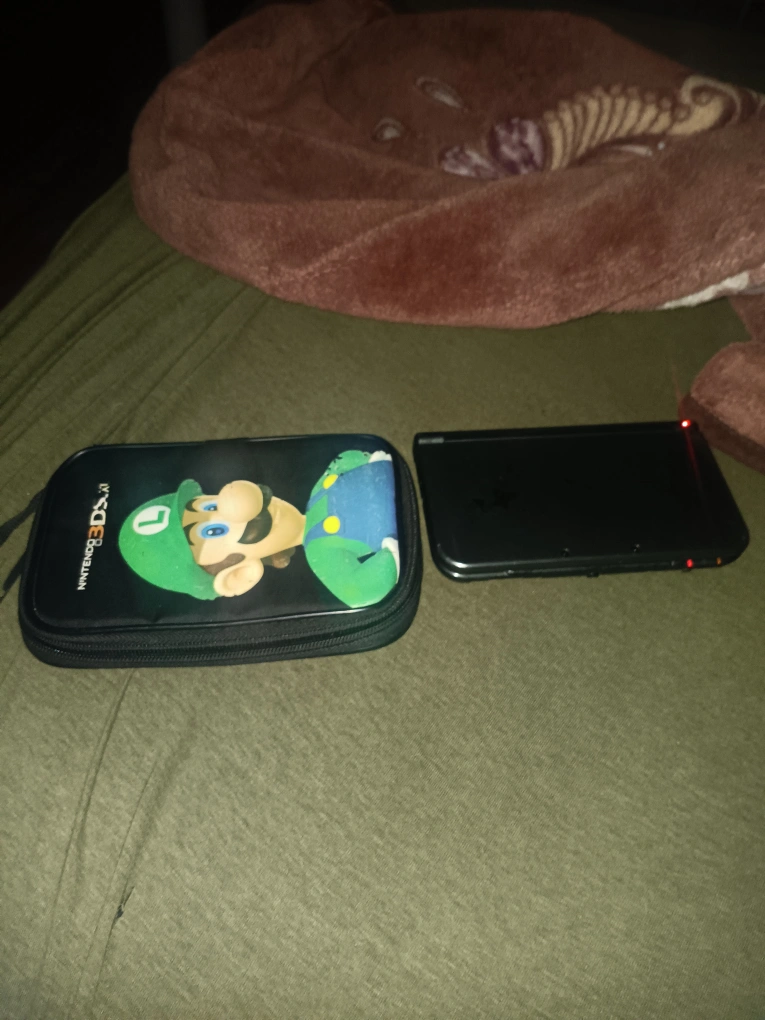 (NEGOTIABLE)Selling a Nintendo 3DS XL in black! It comes with a case featuring Luigi from the Mario franchise. The case also holds game cartridges for easy storage and organization. Great for gaming on the go! Comes with 8 games and the 3DS comes modded. The top cover has scratches and so does the back but works perfectly fine.