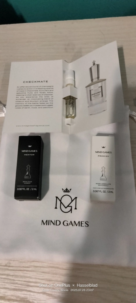 Selling a set of fragrance samples from Mind Games! Includes Checkmate, Mentor, and Prodigy. Each vial contains 0.067 fl oz / 2 mL. 3 for $10