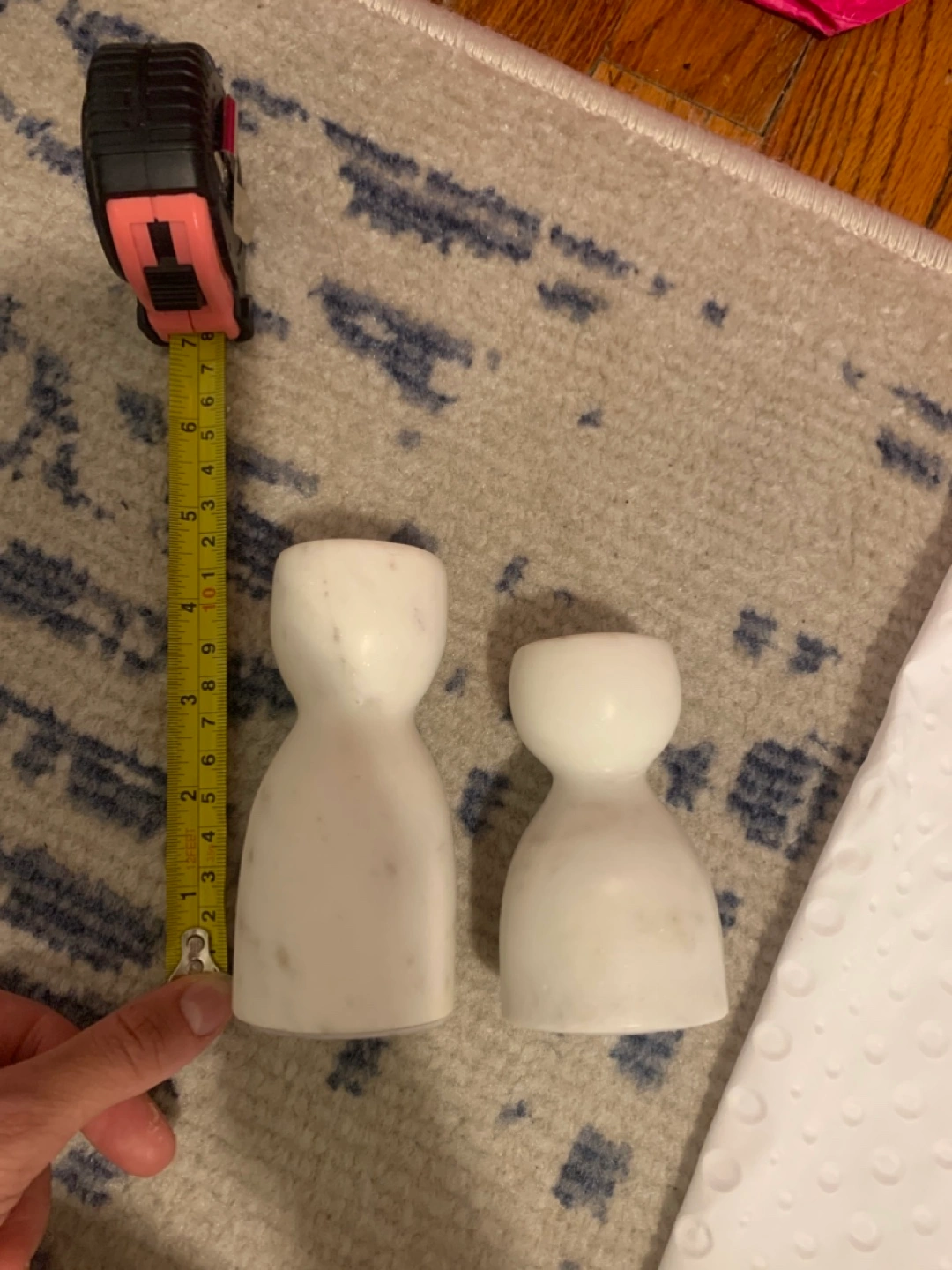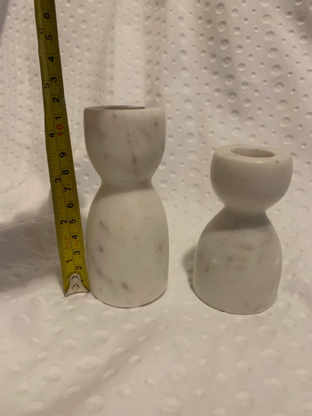 68Two marble candle holders. One is about 6 inches tall, and the other is about 4 inches tall. They are in great condition!